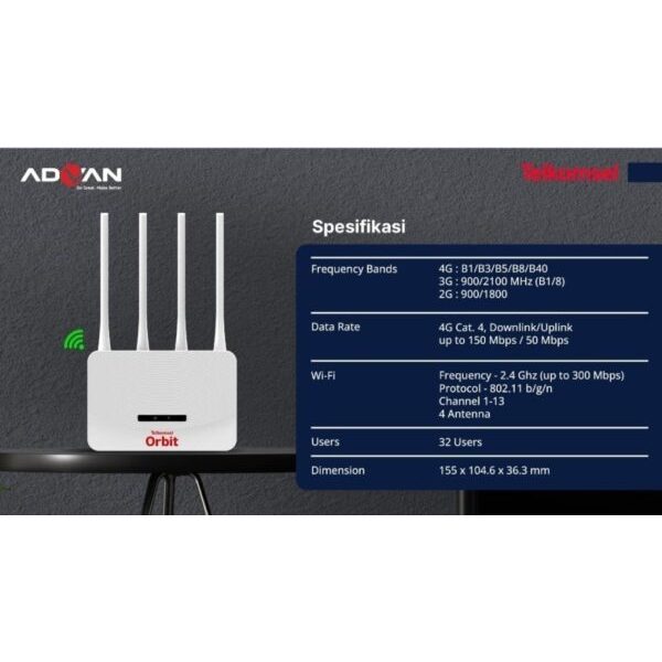 ADVAN ORBIT STAR A2 4G TELKOMSEL Up to 15 Mbps 2,4 GHz Free 150GB Modem 4G Wifi