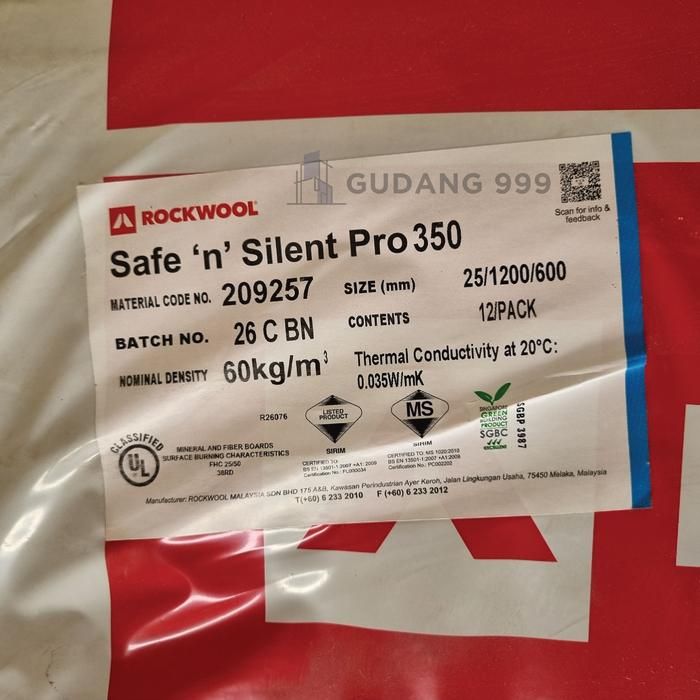 Peredam D60 Kg 2.5 cm / Rockwool / Peredam Suara / Busa Peredam