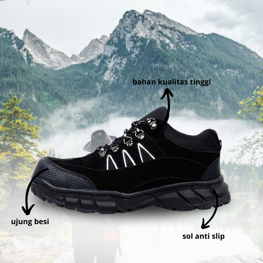 SEPATU BOOT PRIA UJUNG BESI SEPATU SAFETY SEPTI KERJA PROYEK LAPANGAN SEPATU BOOTS GUNUNG PRIA