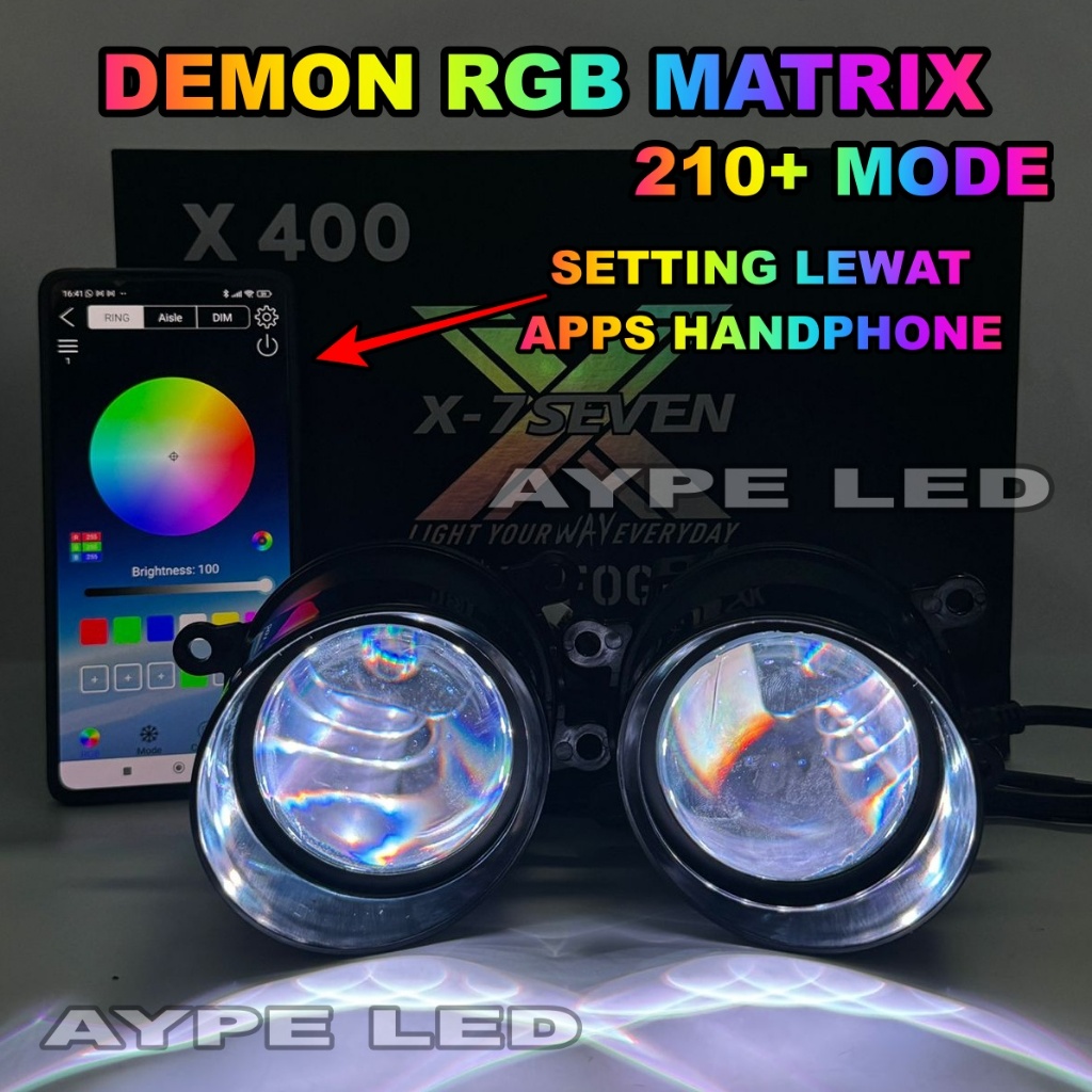 Foglamp Biled X-7Even X400 3 Inch Premium Bluelens Plus Demon Rgb Matrix 210+ Mode 3 Warna Cahaya Foglamp Mobil 3 Inch