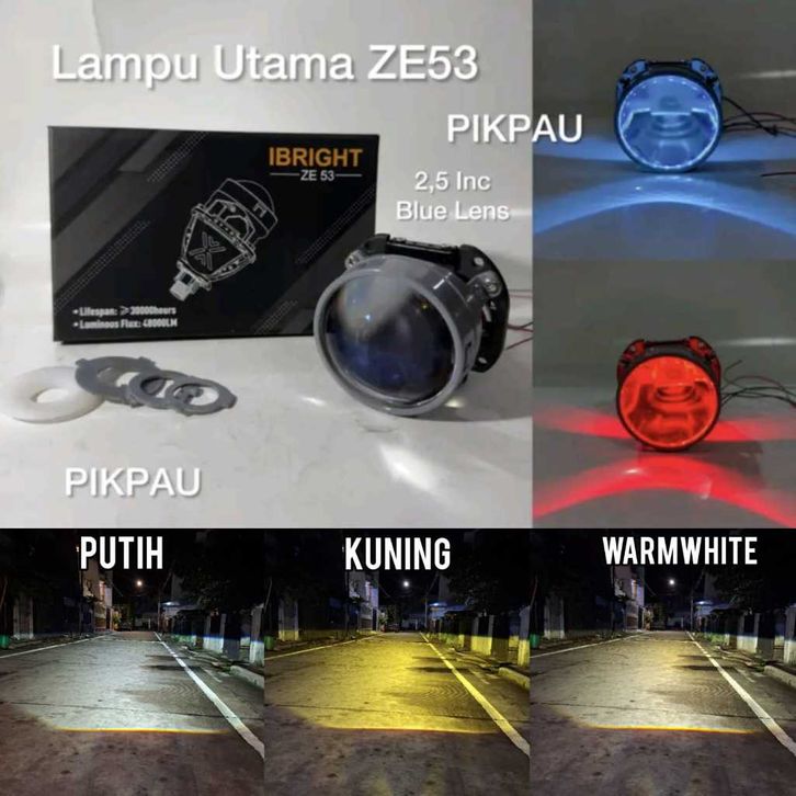 IBRIGHT Lampu Biled 2,5inc ZE53 All Weather Sinar 3 Warna High Low Full Aluminium