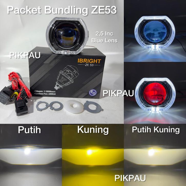PACKET BUNDLING Lampu Utama Biled ZE53 Original 2,5inc Blue Lens Sinar 3 Warna High Low