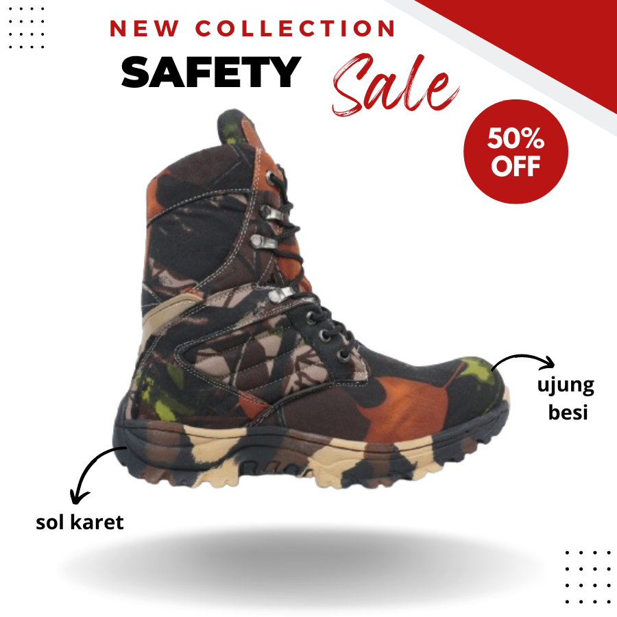 SEPATU BOOTS SAFETY DLTA CAMO TINGGI SAFETY BOOTS UJUNG BESI KERJA PROYEK LAPANGAN SEPATU GUNUNG PRIA WANITA