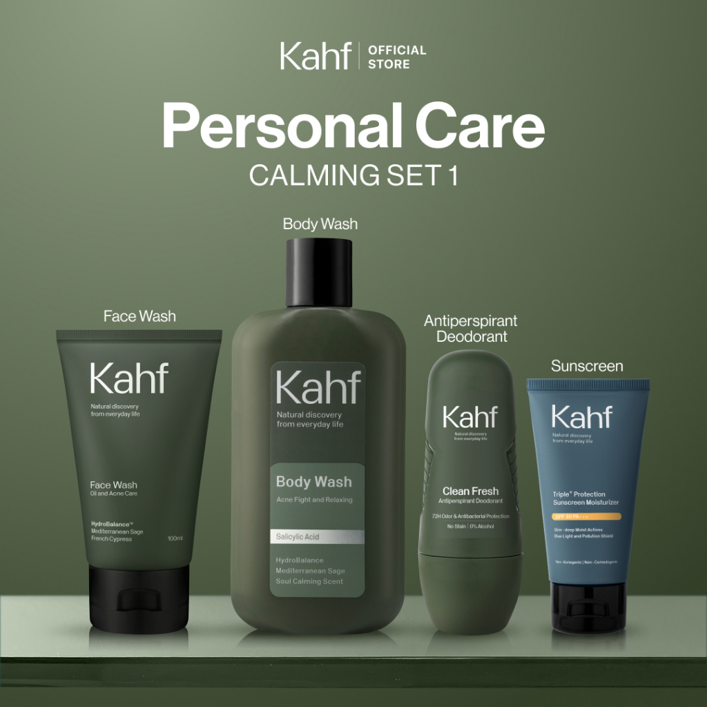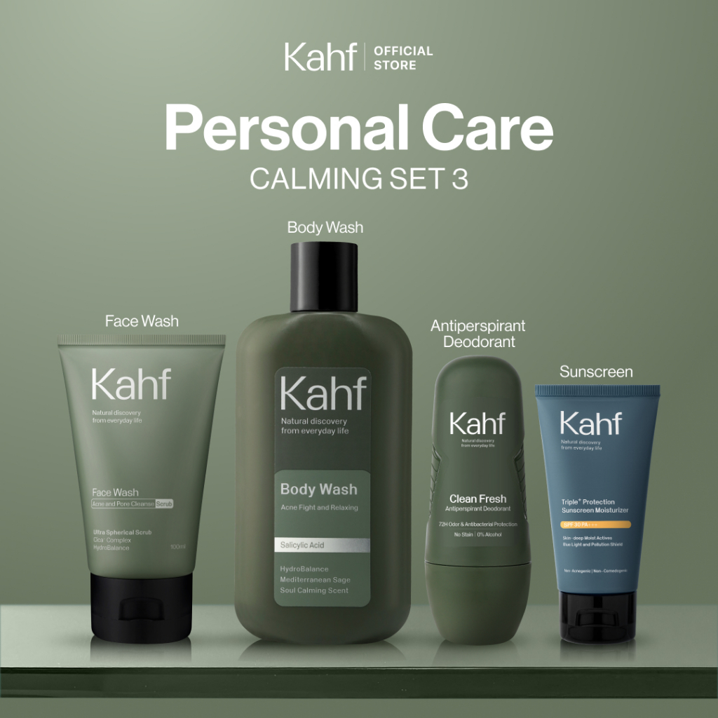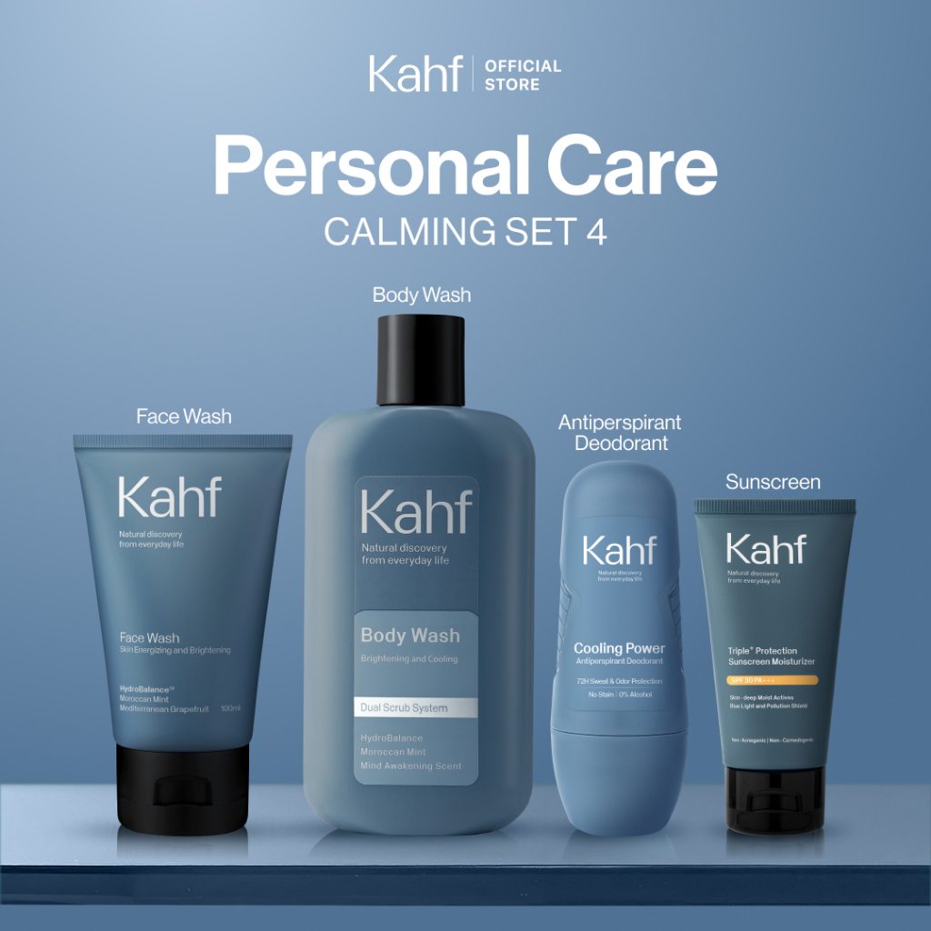 KAHF Paket Personal Care Isi 4 Face Wash+Sunscreen Moisturizer+Body Wash+Deodorant Brightening BPOM TERLARIS