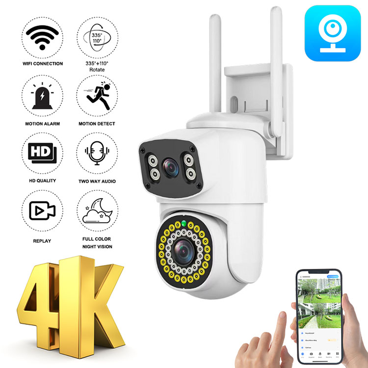 CCTV V380 pro Outdoor WiFi 8MP Dual Lens Waterproof IP Camera 360° IR Night Vision PTZ Kamera
