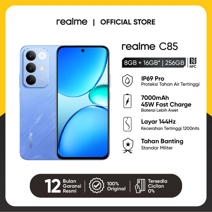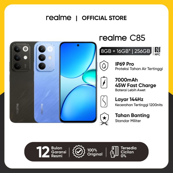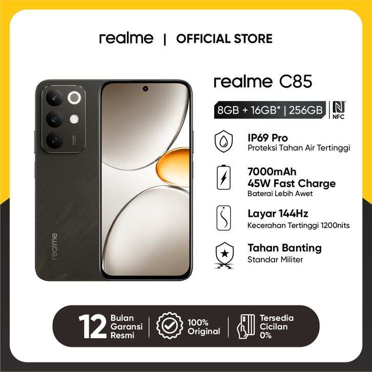 realme C85 4G RAM 8GB 16GB* 256GB 7000mAh Titan Battery IP69 Pro Water Resistance 144Hz 1200nit HP Terbaru Tanpa DP