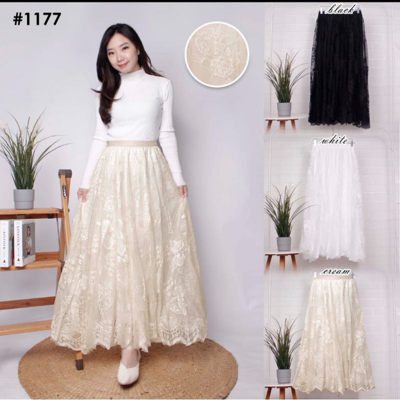 Rok Tutu Brokat -Rok Tutu Premium--Rok Brokat Import Pj 85-93 CM Full Puring Karet Pinggang Ngembang 360 Derajat