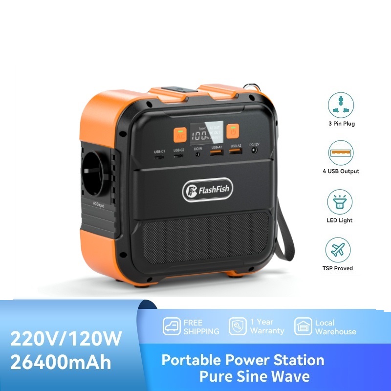Flashfish 120W 26400mAh Mini Power Station Portable Solar Generator Camping with Emergency Light Fast Charging Powerbank