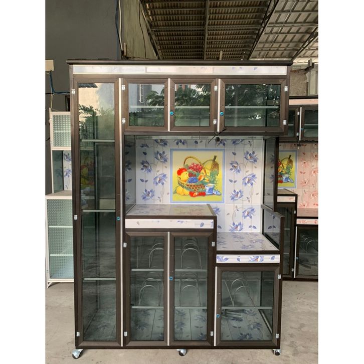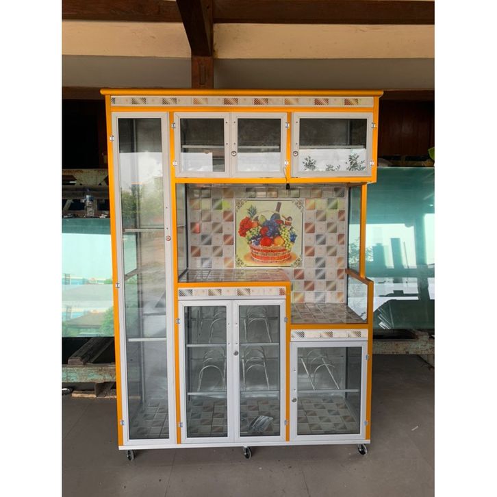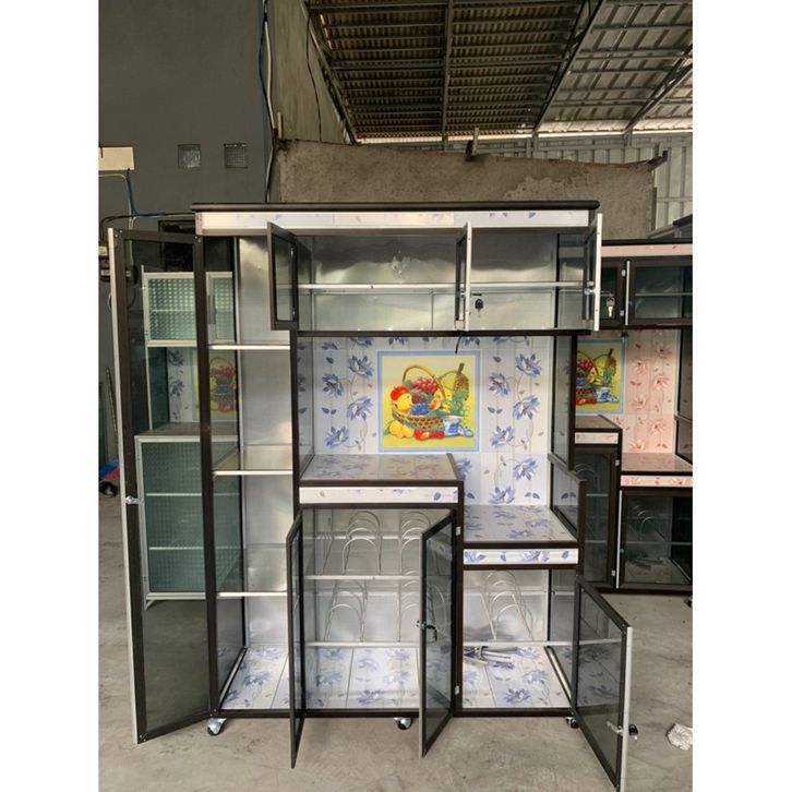 Terlaris rak piring almunium 4 pintu roda/ Lemari Rak Dapur 4 Pintu