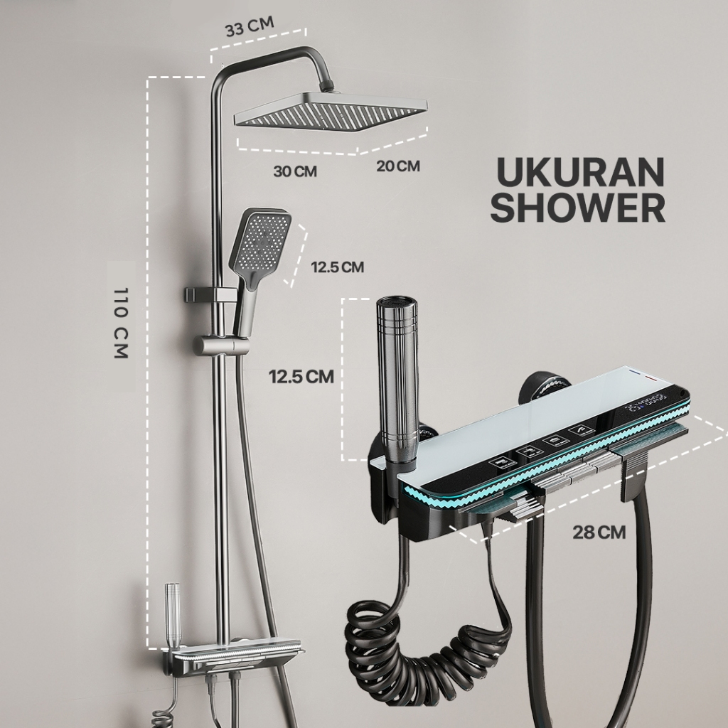 Shower Kamar Mandi Set - 4 in 1 LED Piano Shower Set Kamar Mandi Panas Dingin Abu Gunmetal #9058 Murah Original