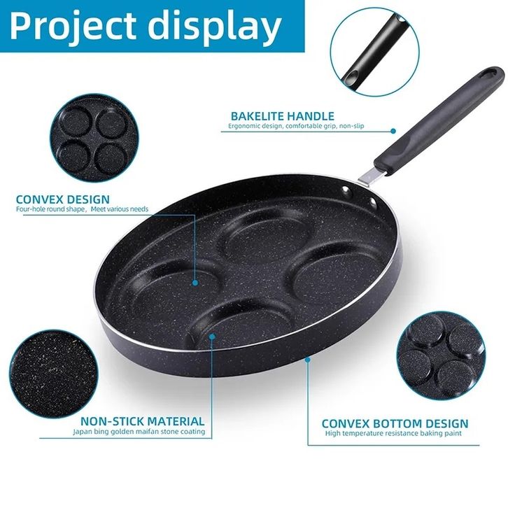 MJ - TEFLON SEKAT 4 ANTI LENGKET TELUR CEPLOK PAN PANCAKE 4 LUBANG CETAKAN BULAT