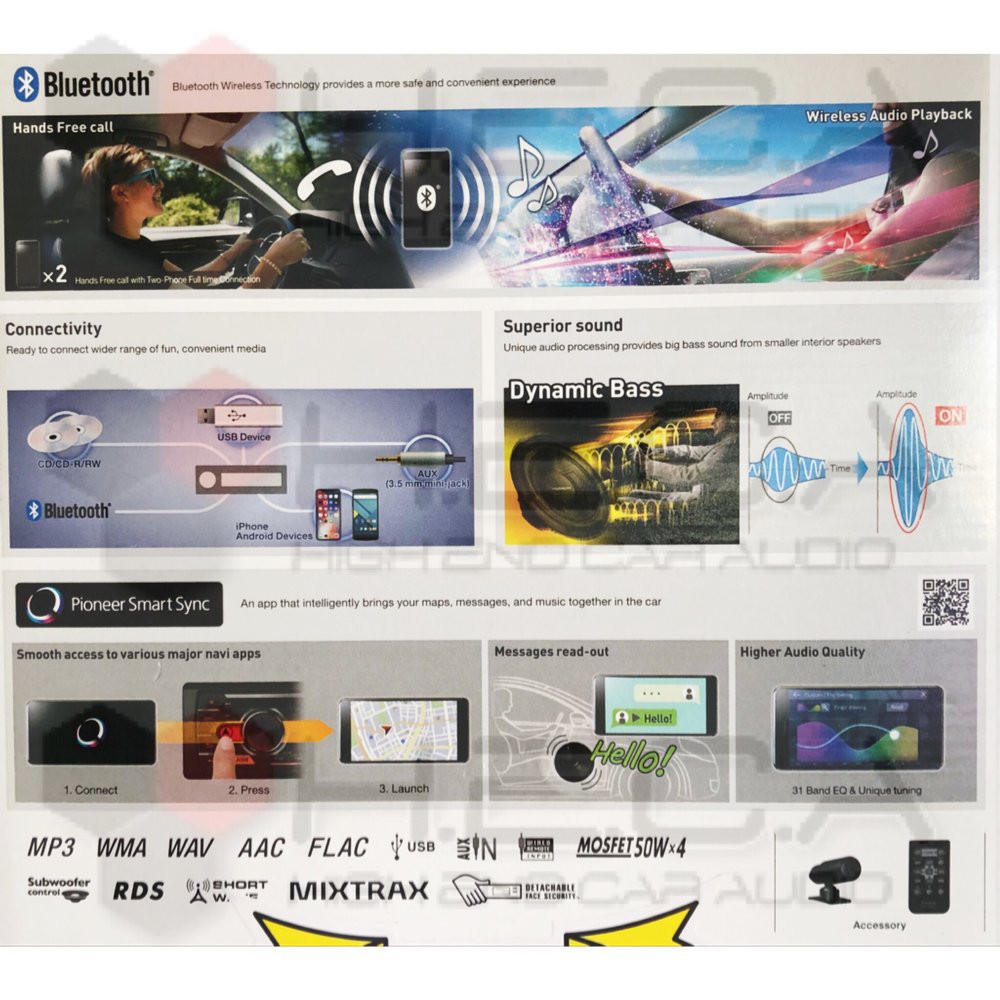 PIONEER DEH-S4250BT BLUETOOTH SINGLE DIN TAPE MOBIL AUDIO DEH S4250 BT HEAD UNIT 4250 SMART SYNC