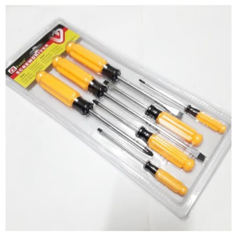 Obeng Set isi 7 Pcs Kepala Magnet Fatick Screwdriver Tools Multifungsi Batang Mata + - Bunga Min Plus Ezzy