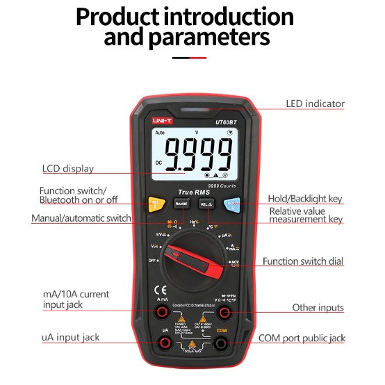 UNI-T DIGITAL MULTIMETER BLUETOOTH SMART APPS UT60BT VOLT AMPERE RESITANCE TEMPERATURE
