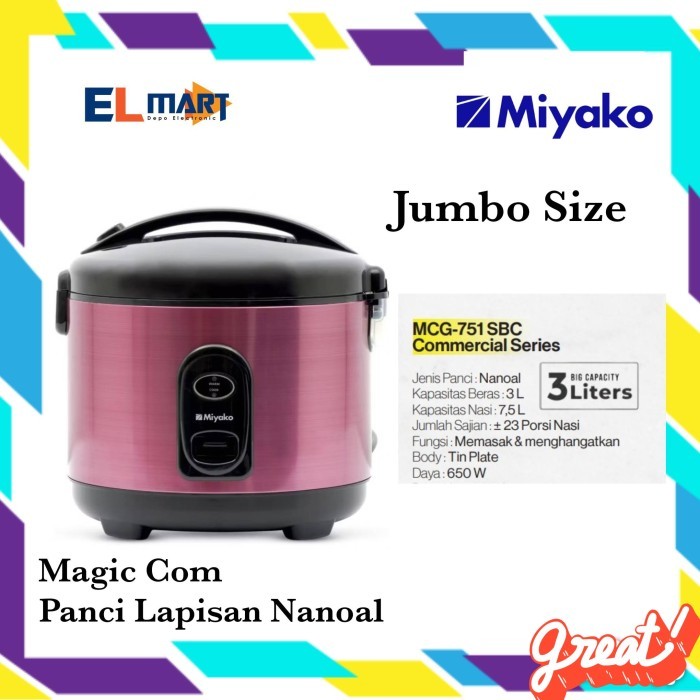 Miyako MCG751SBC Magic Com Jumbo 3L Panci Nanoal MCG 751SBC 751 SBC Panci Lapisan Nanoal 3 Liter Anti Lengket