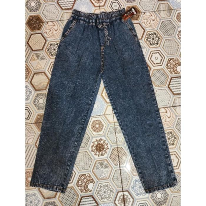 Celana Luna Jeans Wanita pinggang karet size (Standar-Jumbo) cutbray jeans wanita Denim Nyaman Panjang - HITAM SNOW