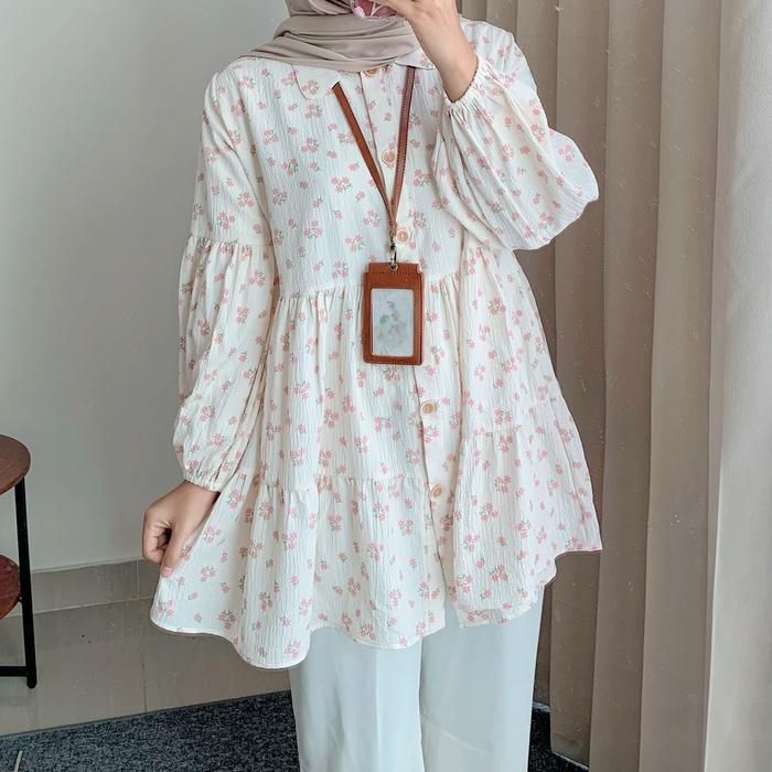 DYANDRA TUNIK | tunik motif | blouse tunik | atasan tunik motif floral | moutfit - DAISY BW TUNIK