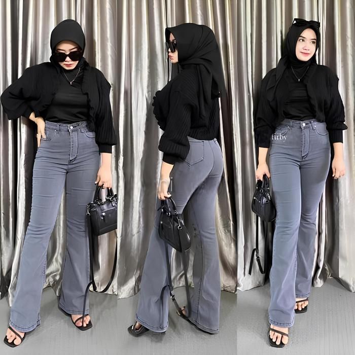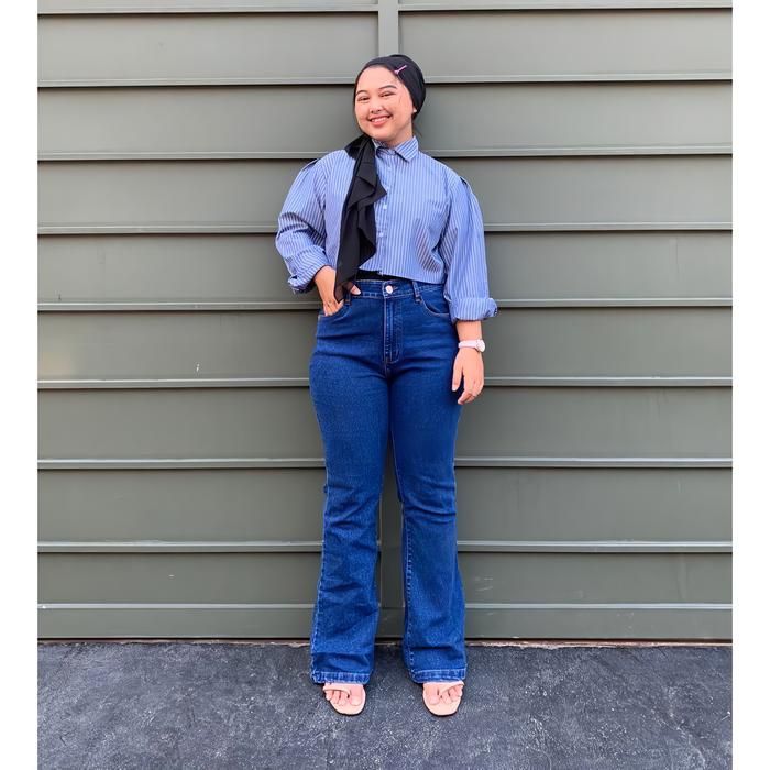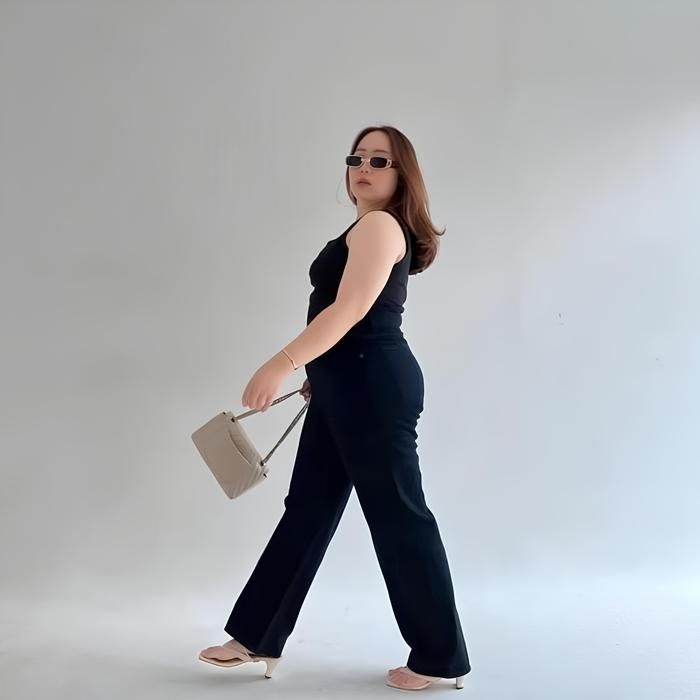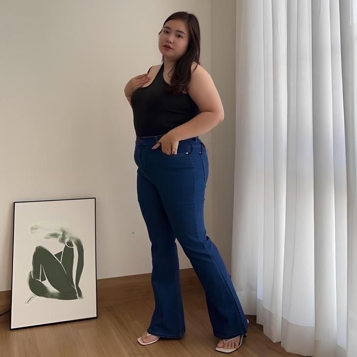 Celana Highwaist Cutbray Jeans Wanita Jumbo 35-42 Big Size Muat BB 100Kg Hitam - DRAK