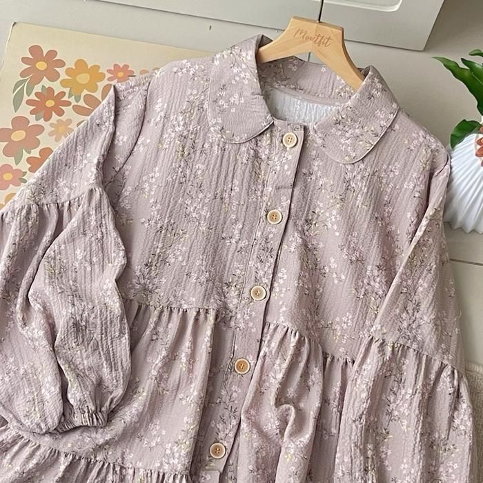 DYANDRA TUNIK | tunik motif | blouse tunik | atasan tunik motif floral | moutfit - ESME GREY STONE