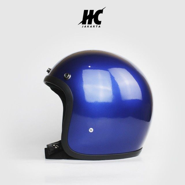 TERMURAH✅ Helm Slimhead Blue Glossy Basic Black Leather | All Size