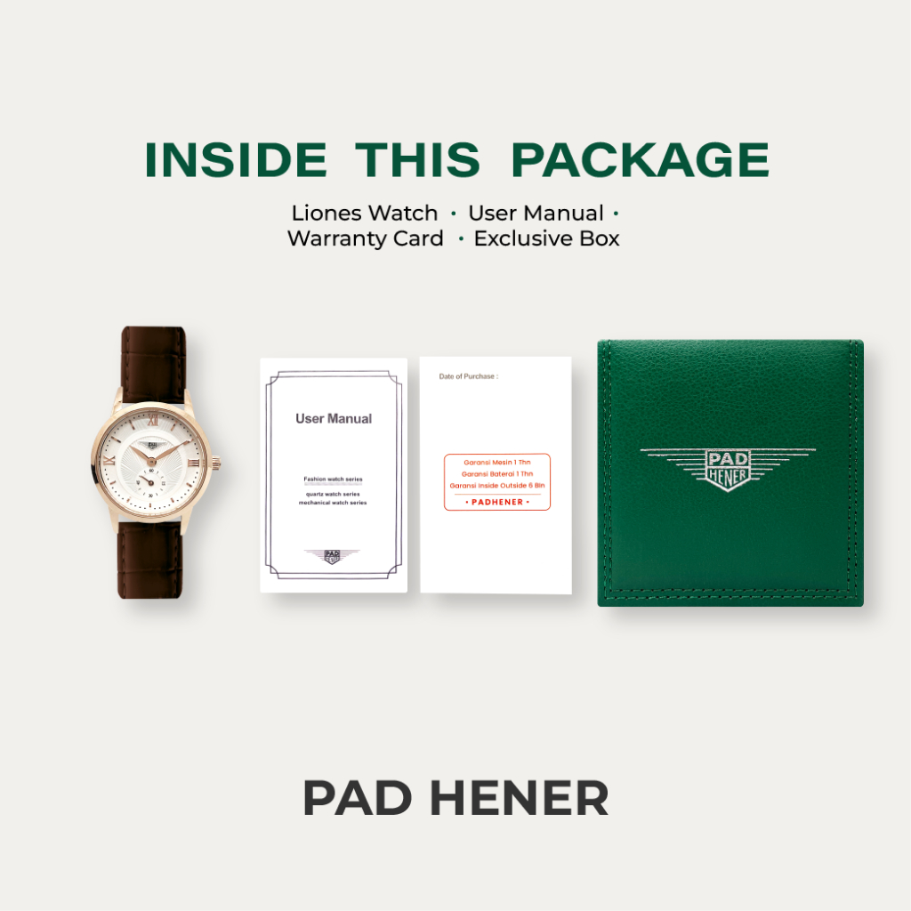 Jam Tangan Couple Pria Wanita – PAD HENER Liones Leather, Anti Air, Fashion Elegan, Tanggal Aktif
