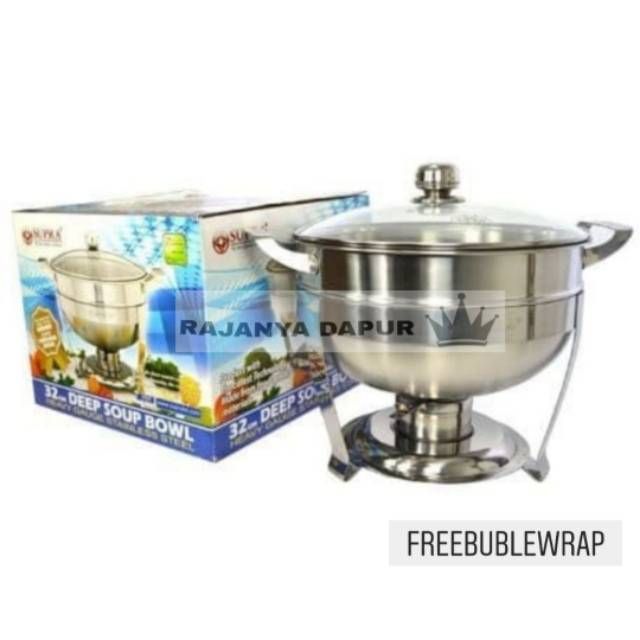 BEST SELLER Tempat Prasmanan Bulat / Tempat Sup Bulat Supra Deep Soup Bowl 32 cm Tutup Kaca / Stgh Kc Bulat Stainless