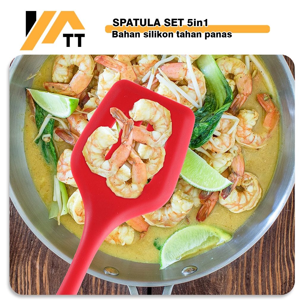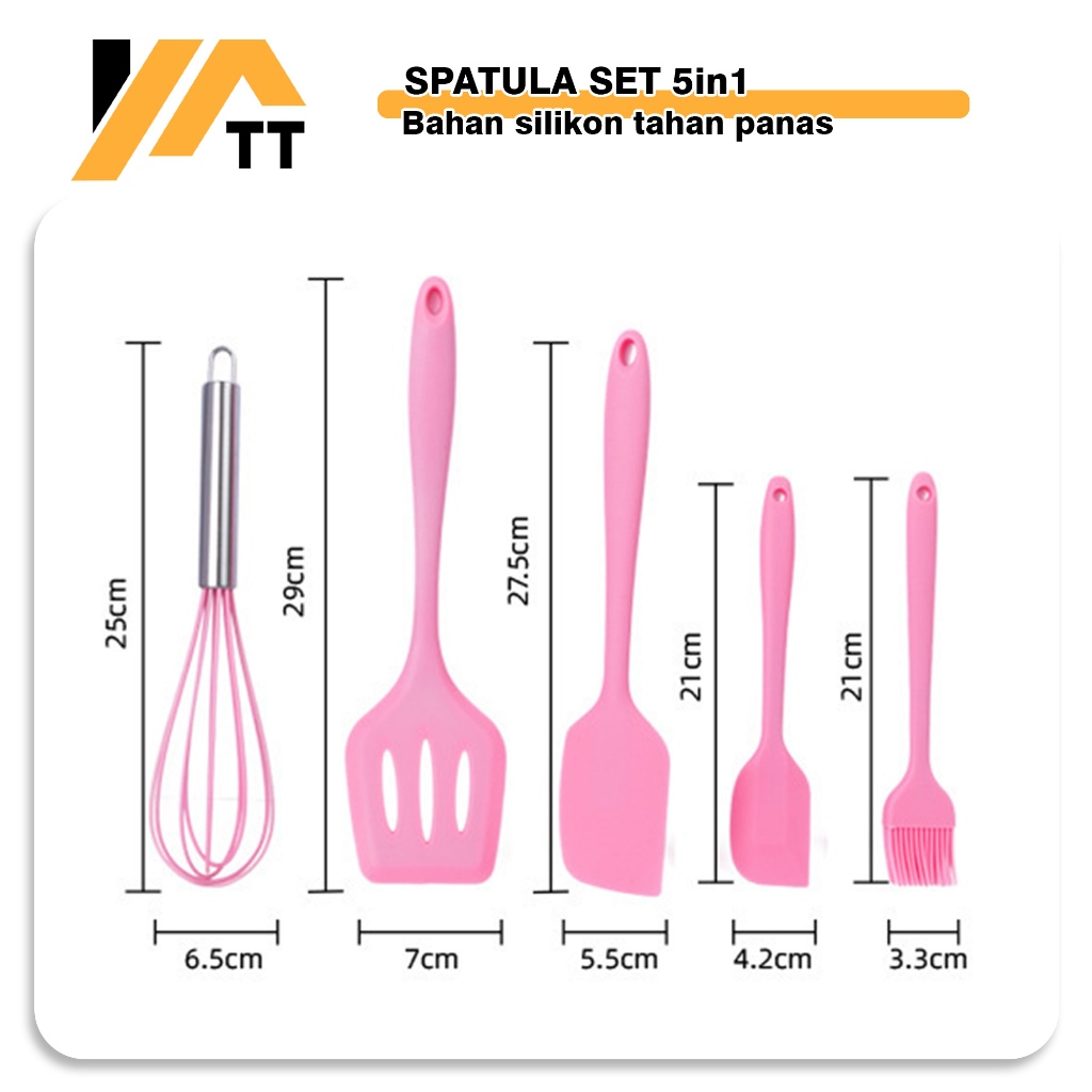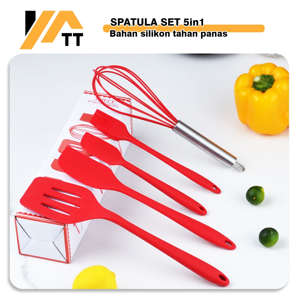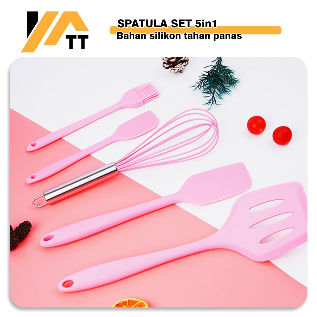 YATT Spatula Silikon Set Silicone Utensil Alat Masak 5 in 1 Sutil Kuas Silikon Tahan Panas BPA-Free