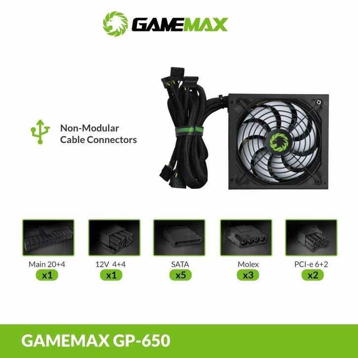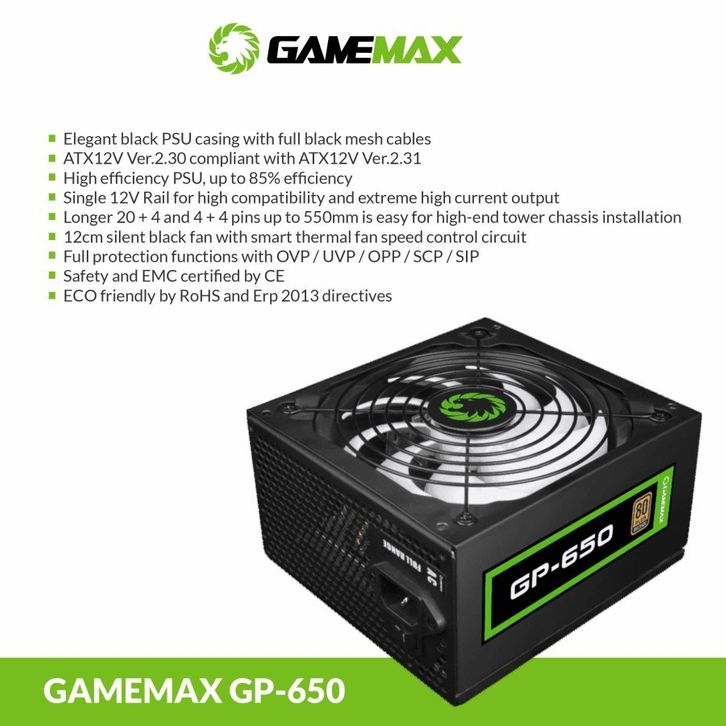 Gamemax GP650 PSU 650Watt 80+ Pure GP Series Bronze Certified - Power Supply 650W