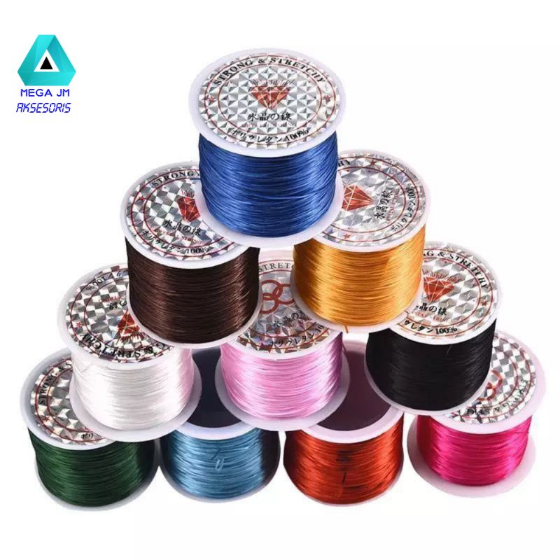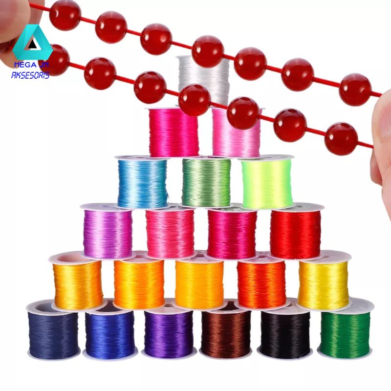TALI BENANG KARET ELASTIS 60 METER/ROLL UKURAN 0,6 MM UNTUK MEMBUAT GELANG DAN KERAJINAN DIY