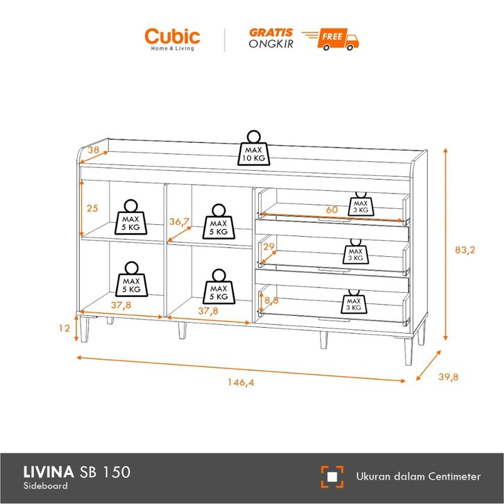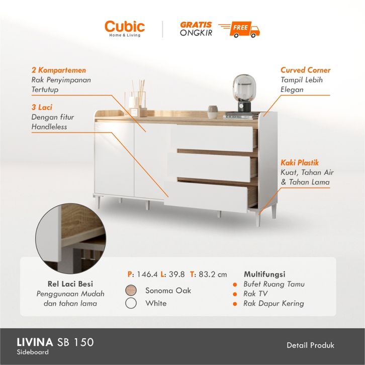Cubic Sideboard Minimalis / Bufet Serbaguna / Lemari Kabinet / LIVINA SB 150