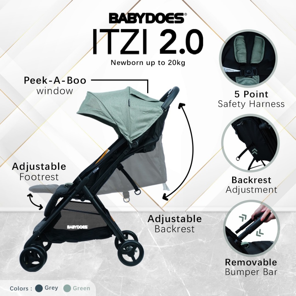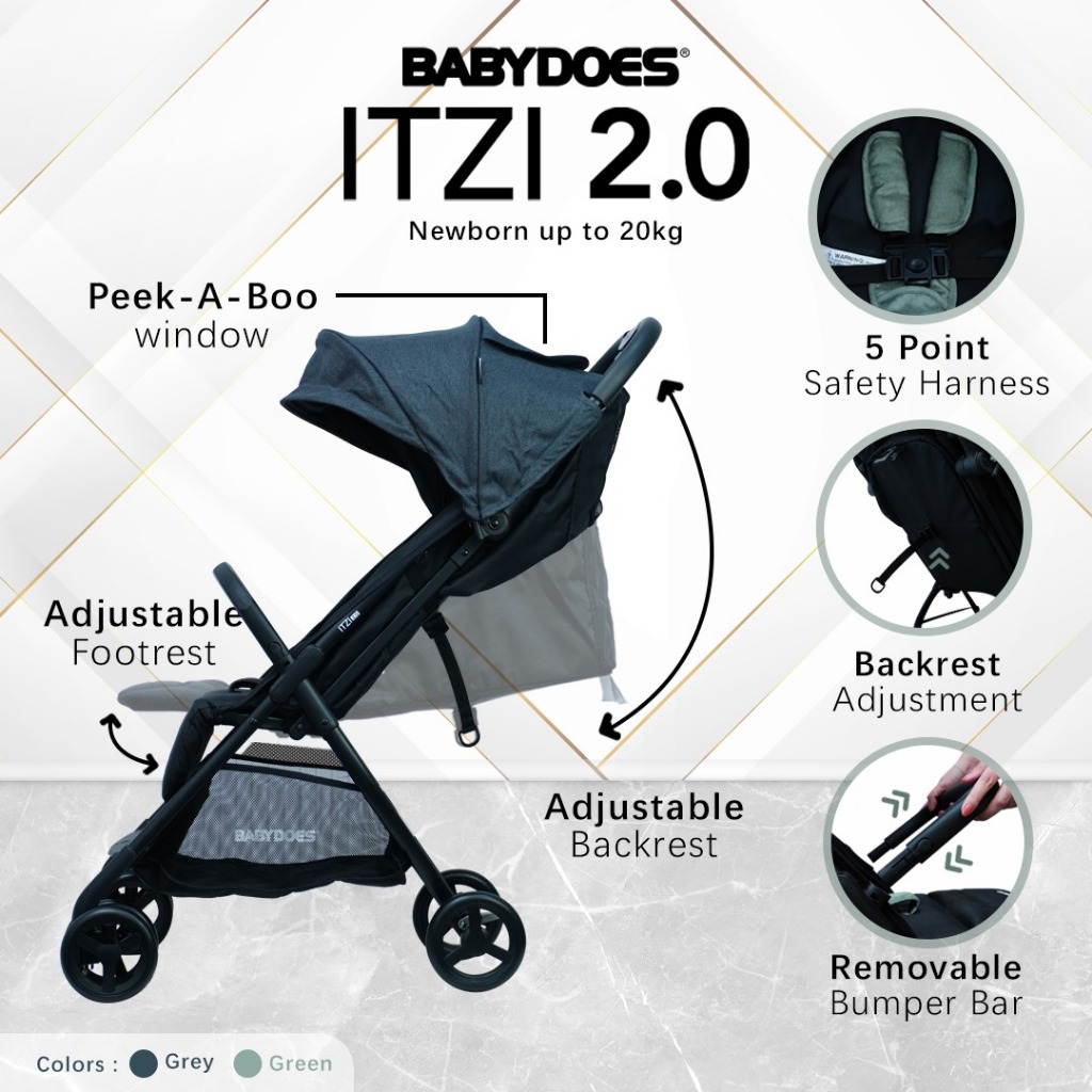 Stroller Bayi Babydoes Itzi 2.0 Autofold Grey Green Kereta Dorong Bayi Ori Official Store