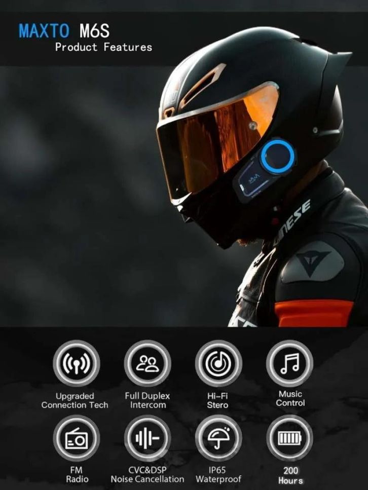 Maxto M6S Intercom 8 Riders IP67 Music Sharing Chipset Qualcomm Ganda Alt Maxto M2 M2C