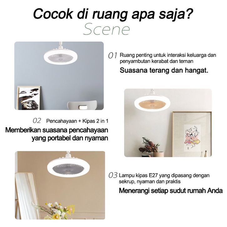 BEST SELLER Lampu Kipas Angin Remote 3in1 36W E27 Plafon Fan Ceiling