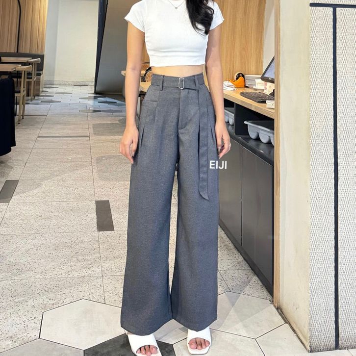 Obi Pants - Celana Highwaist Trousers Loose Pants - Celana Kulot Kantor Formal Anti Kusut Casual