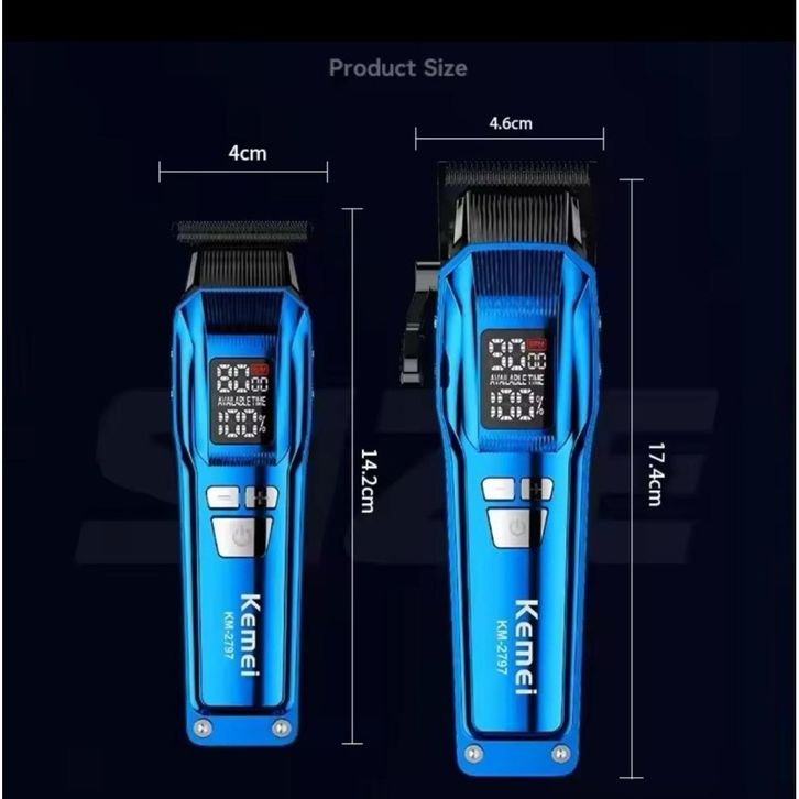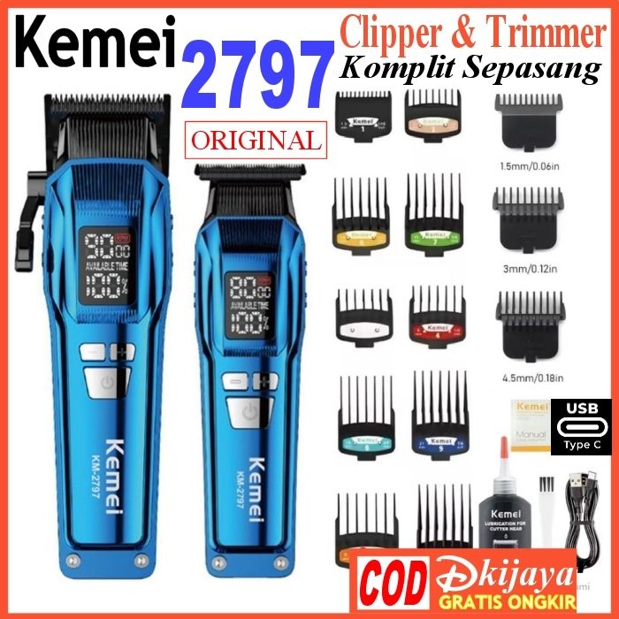 KEMEI 2797 ORIGINAL BIRU HITAM SET SEPASANG CLIPER dan TRIMER Mesin Cukuran Rambut KM 2795 2796 2797