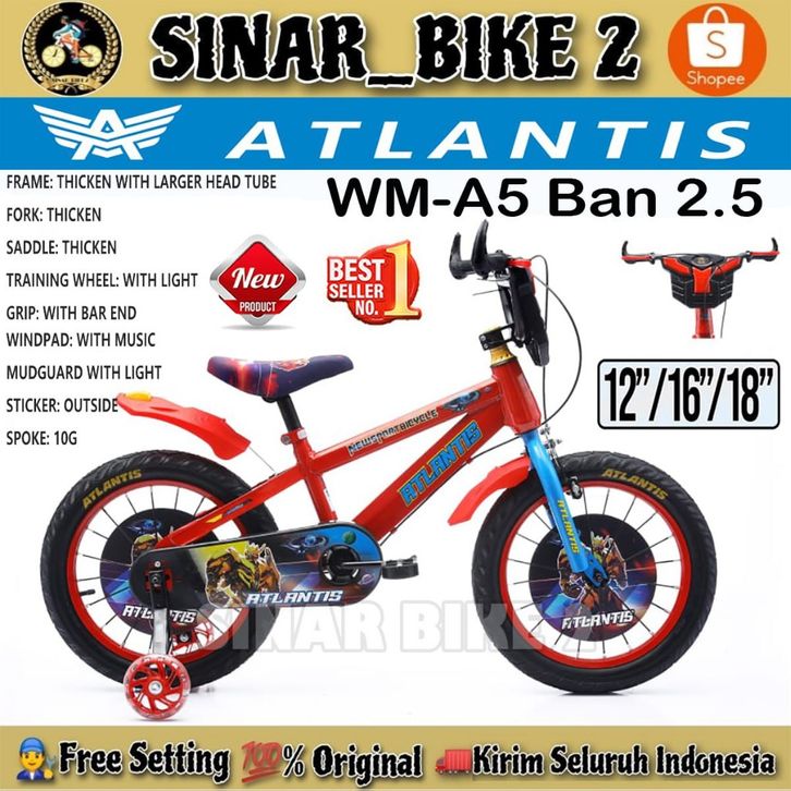 Sepeda Anak Laki BMX ATLANTIS WM A5 Ban Jumbo 2.50 Ukuran 12 16 18 Inch Tameng Musik TERLARIS