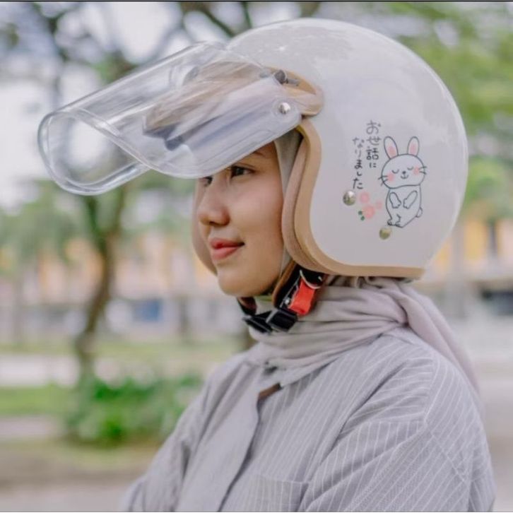 Helm Bogo Retro Vista Motif Kaca Flat Clear Cewek Hijab