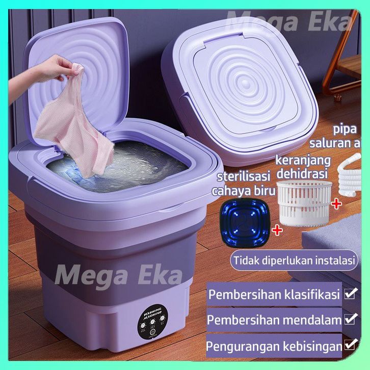 Pengering Pakaian Original Mesin Cuci Mini Portable Lipat 8L Mesin Cuci Bayi Pengering Pakaian Desinfeksi Cahaya Biru P