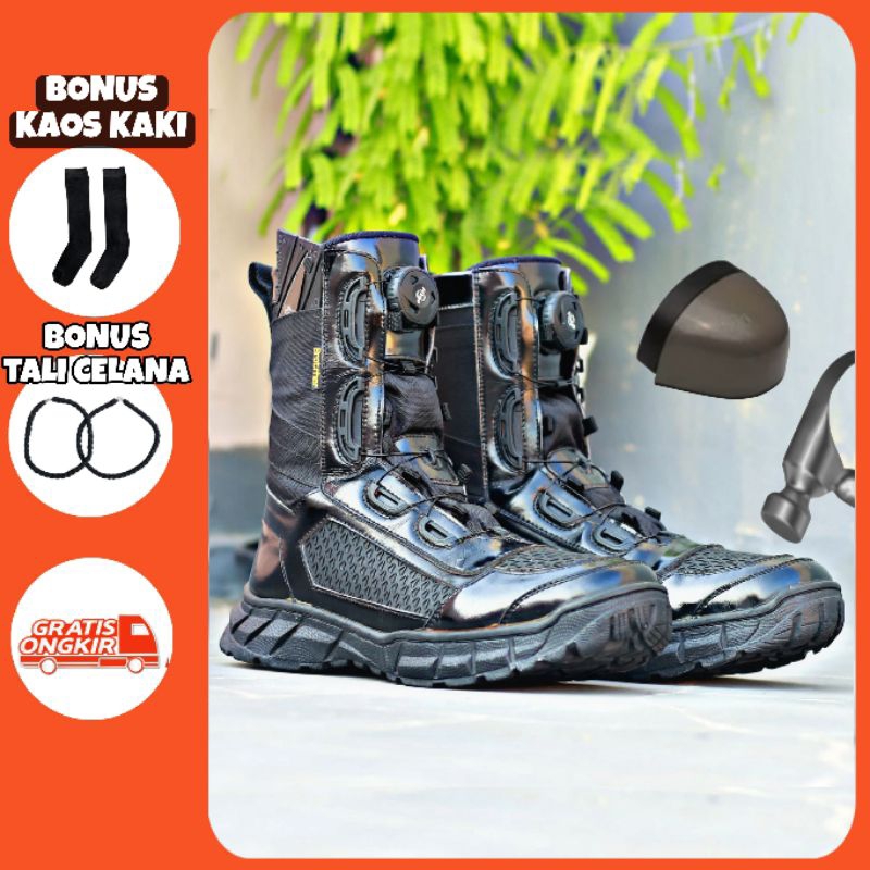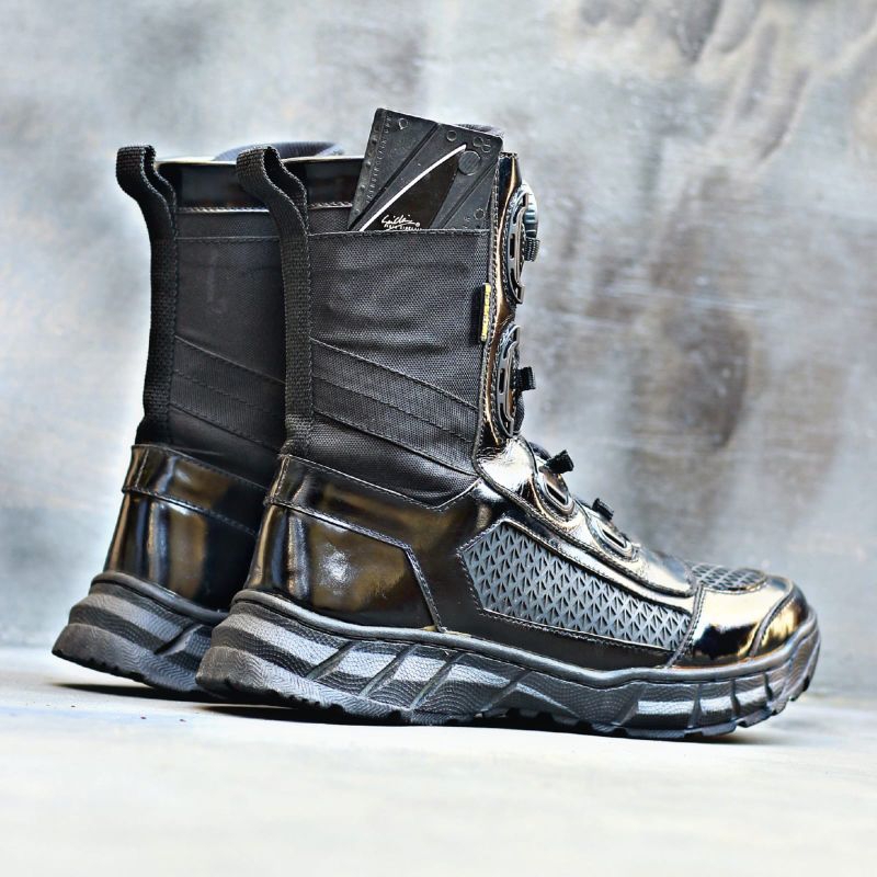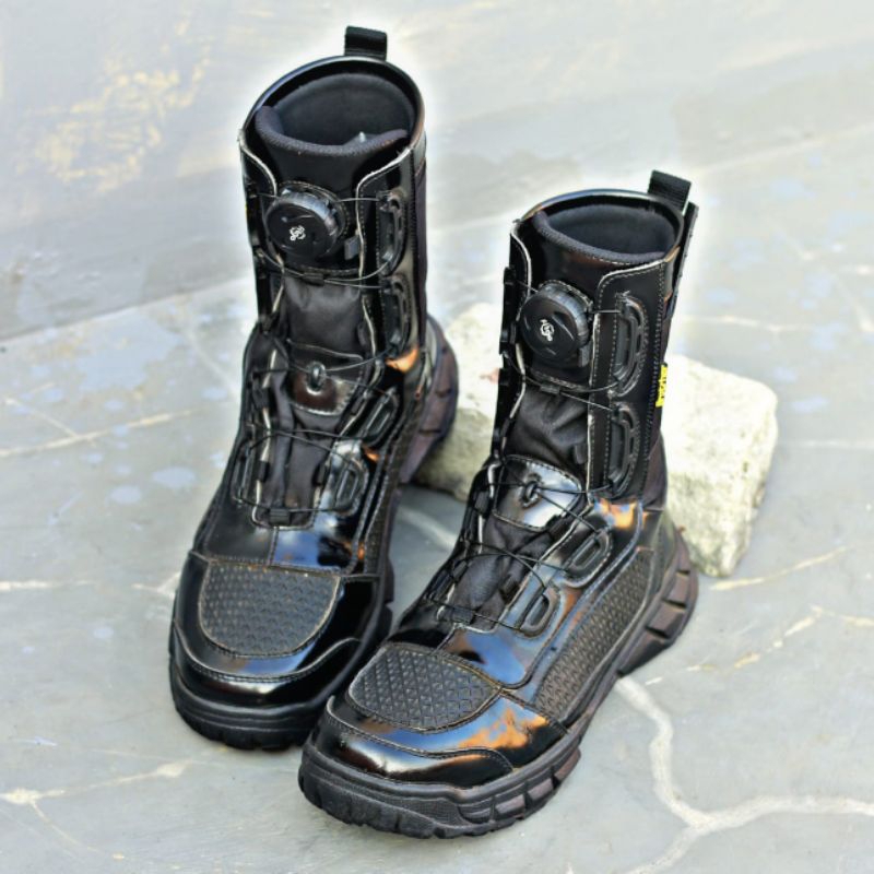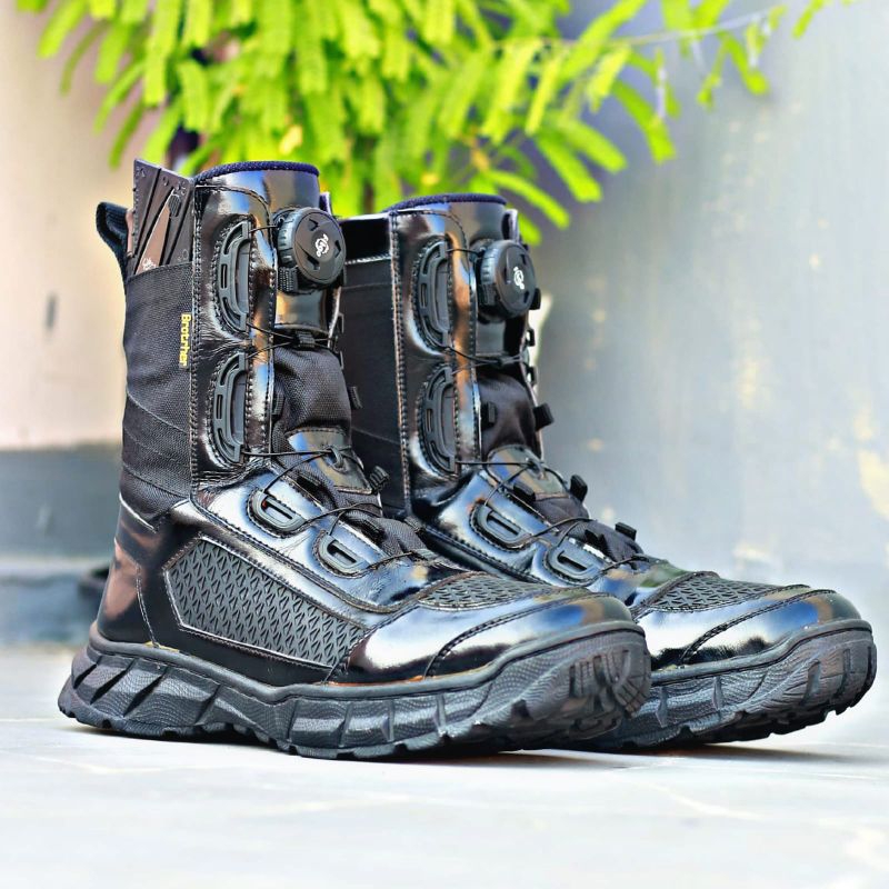 Sepatu Pdl Tali Putar Kulit Kilap Merk Brotrher Fitwon Kilap Bahan Kulit Sapi Kombinasi Kordura Anti Air Tali Putar Fitg