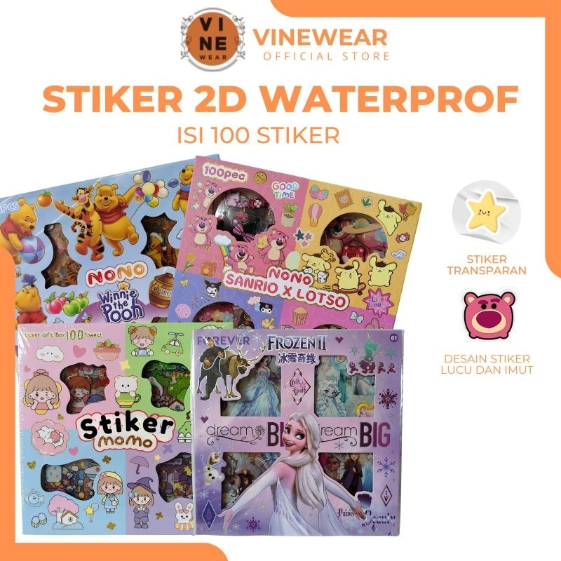 STIKER 2D 100 LEMBAR STICKER MOMO KARTUN KOREA LUCU ANTI AIR