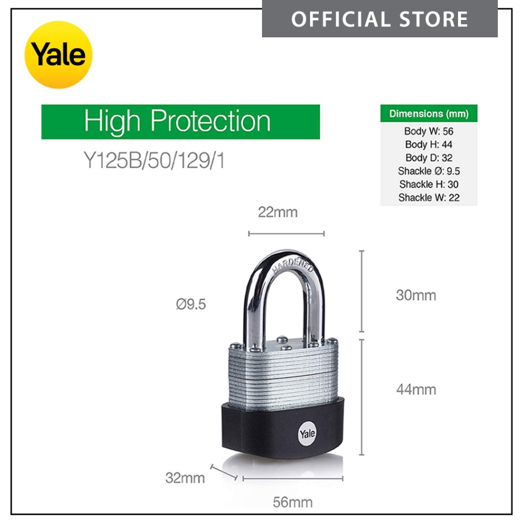 Gembok Padlock YALE Y125B/50/129/1 Laminated Steel Series ORIGINAL