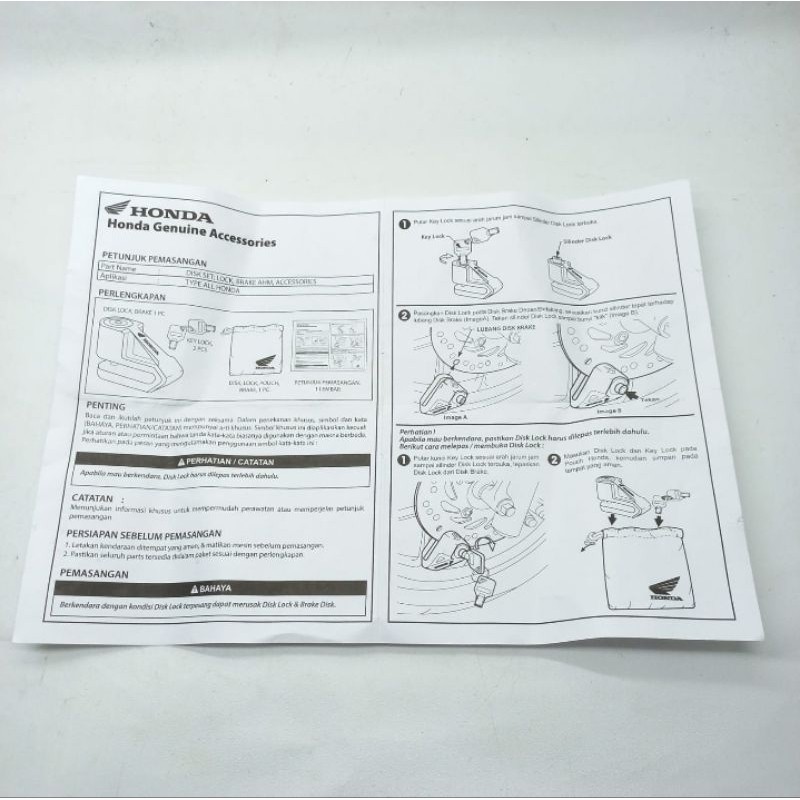Gembok Cakram Original AHM Honda Kunci Rem Cakram Universal Semua Cakram Motor