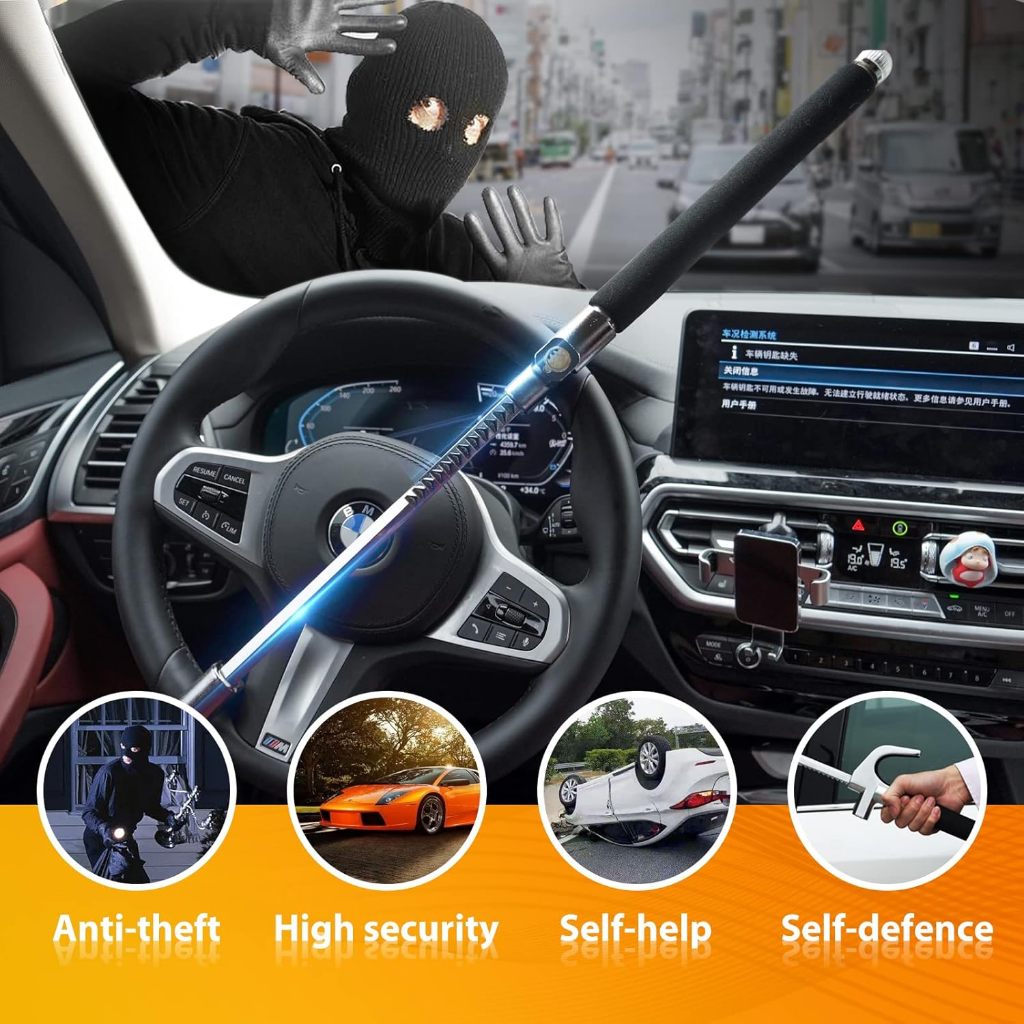 2in1 Pengaman Anti Maling Gembok Mobil Baja Tahan Karat Kunci Foldable Lipat Stir Mobil
