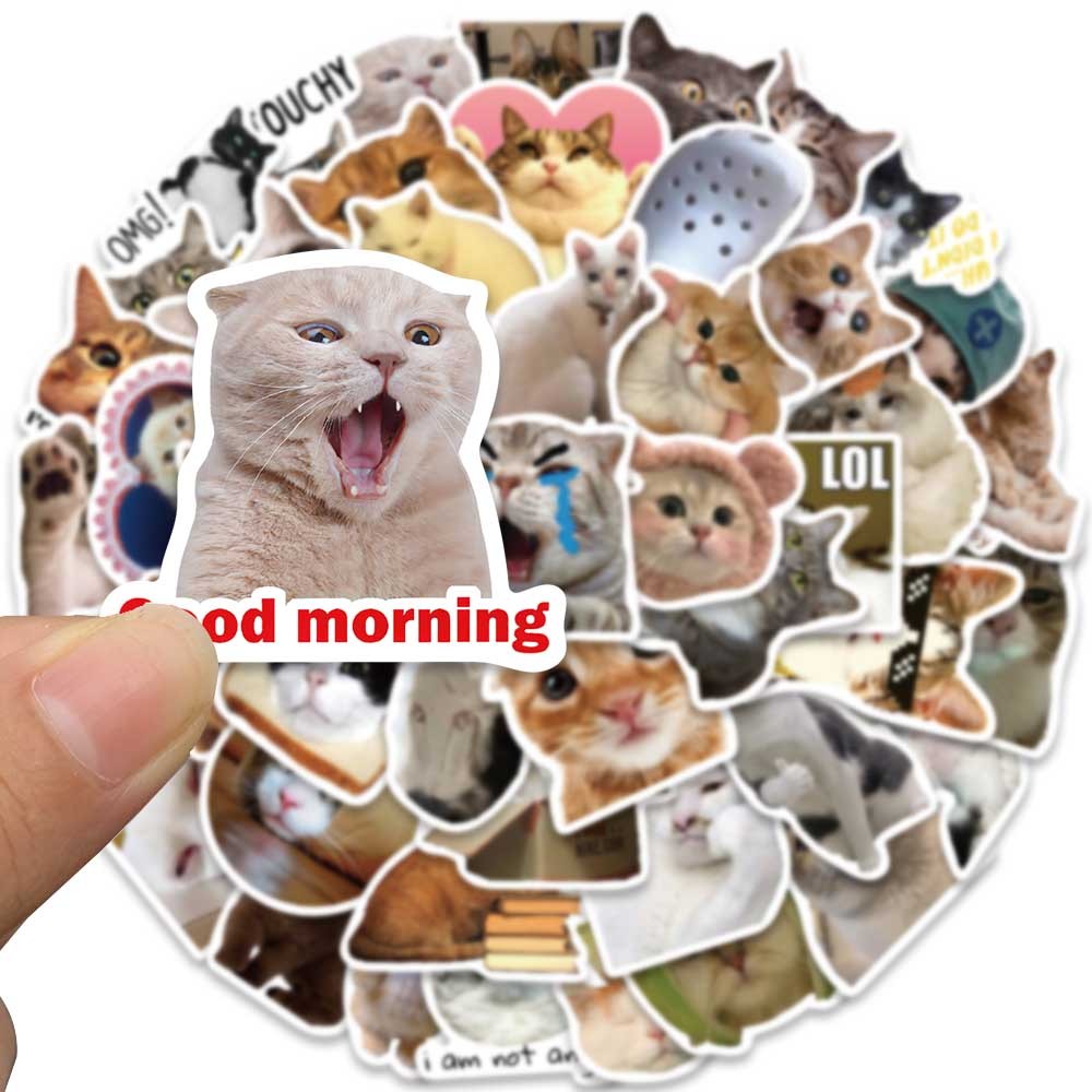 EKSPRESI KUCING YANG LUCU UNTUK PAPAN LUNCUR/BUKU HARIAN/LAPTOP/STICKER HELM TAHAN AIR VINIL/HP CASING STIKER TAHAN AIR