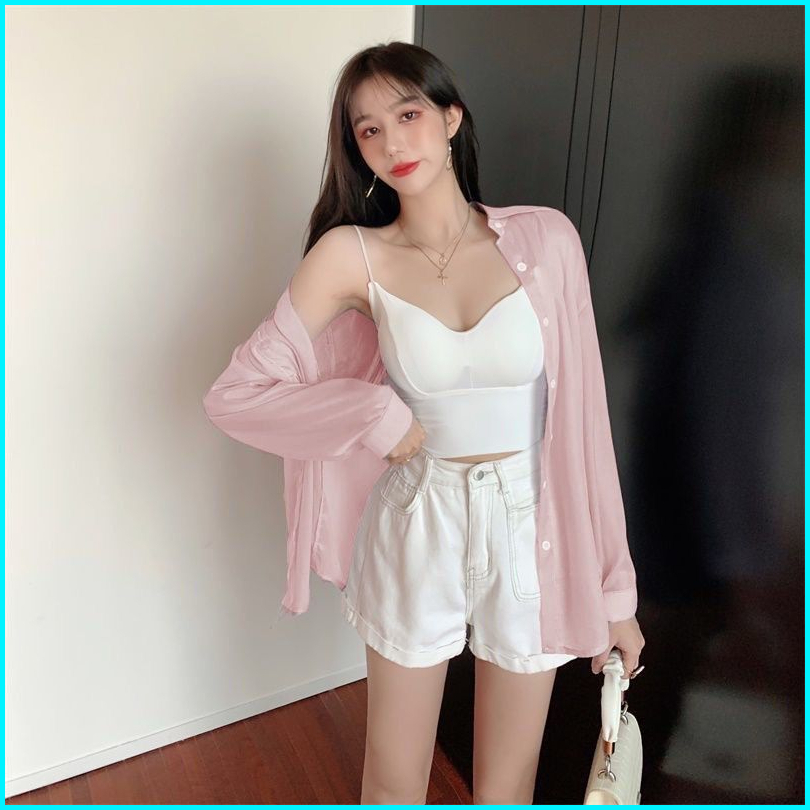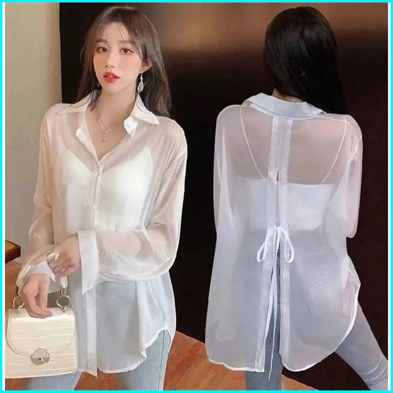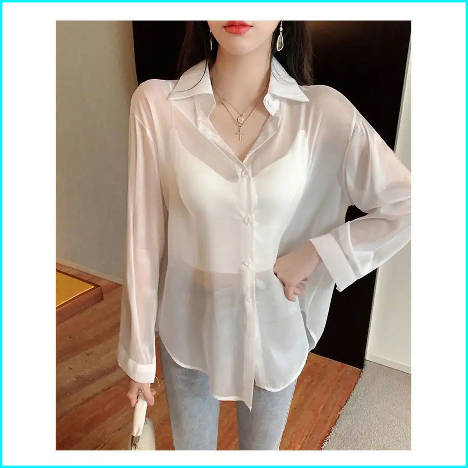 Basic Id Fashion Kemeja Transparan Kemeja Korean Style Lengan Panjang Kemeja Wanita Pantai Kemeja Kekinian