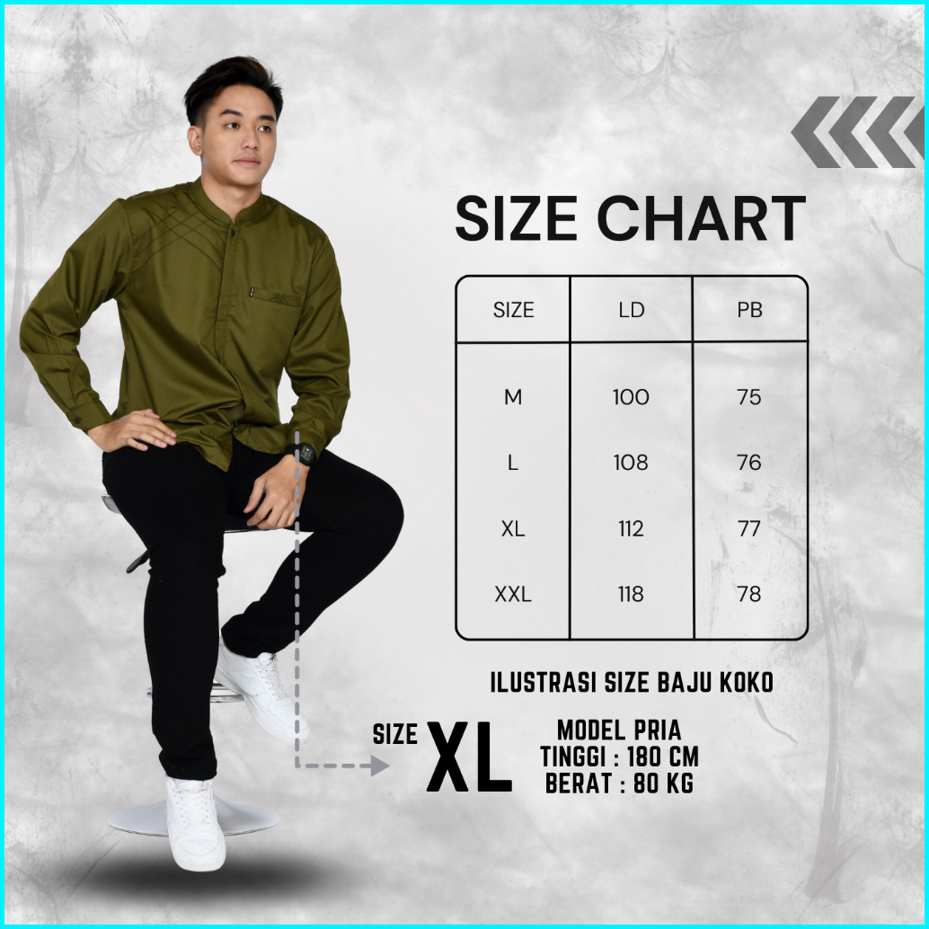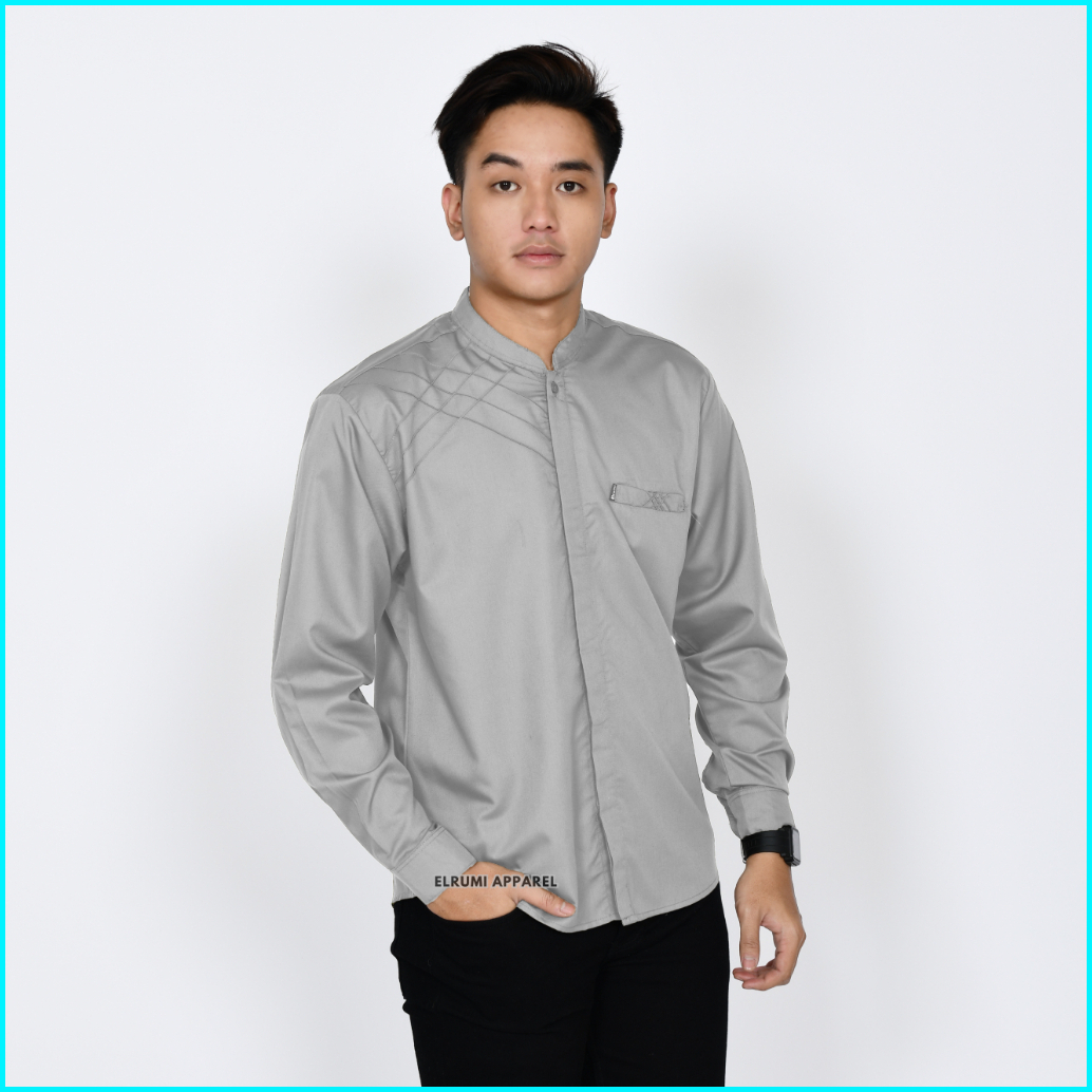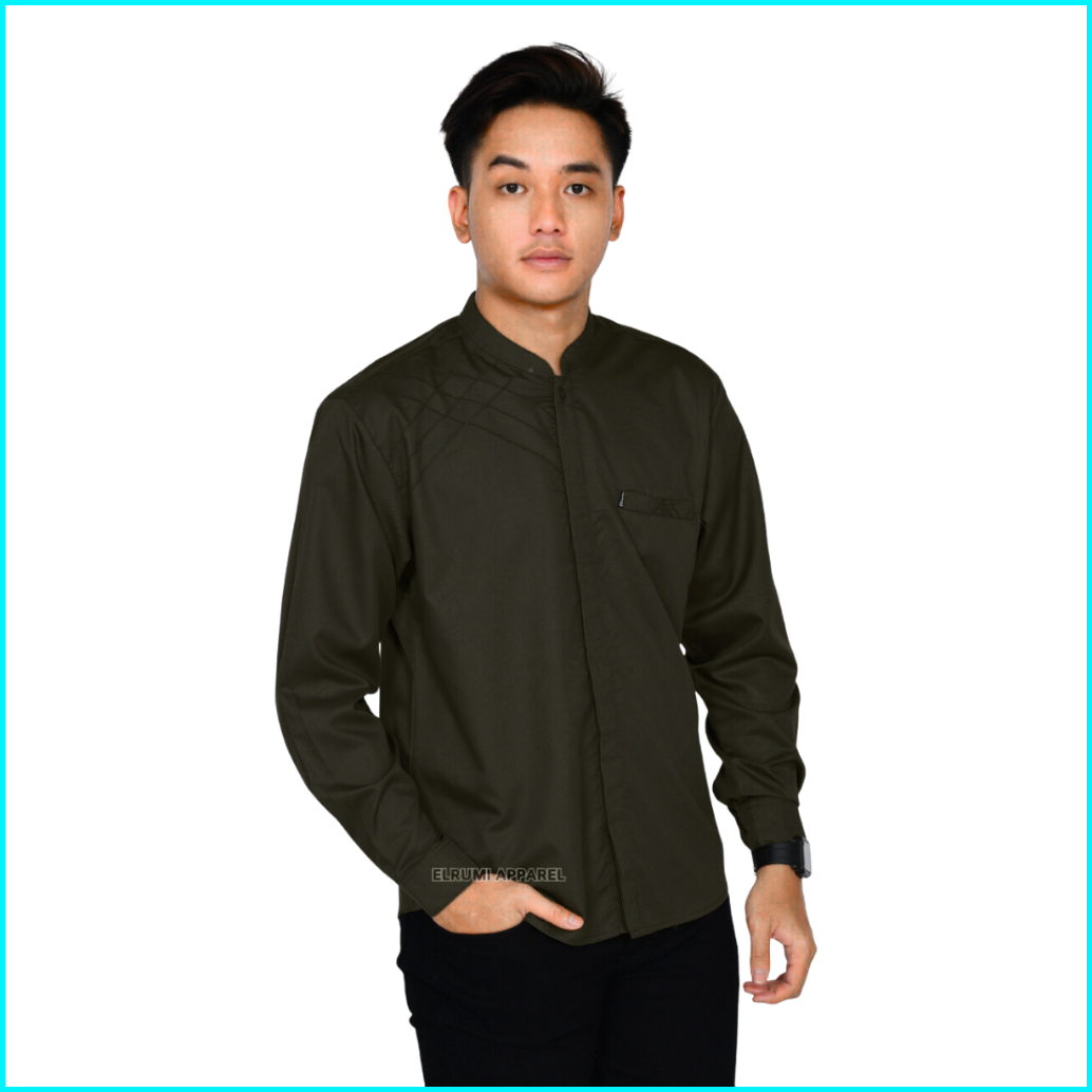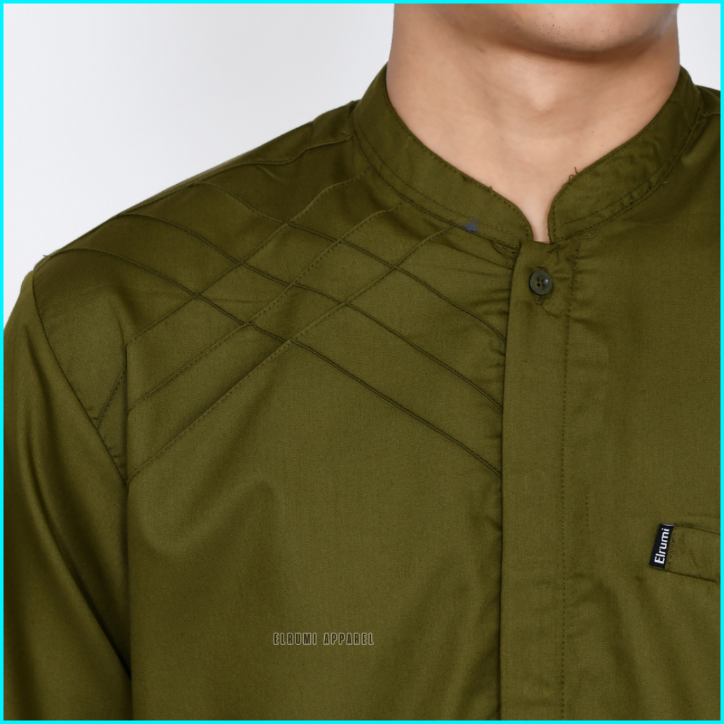 Baju Koko Pria Dewasa Lengan Panjang Warna Olive Motif Signature Original Elrumi