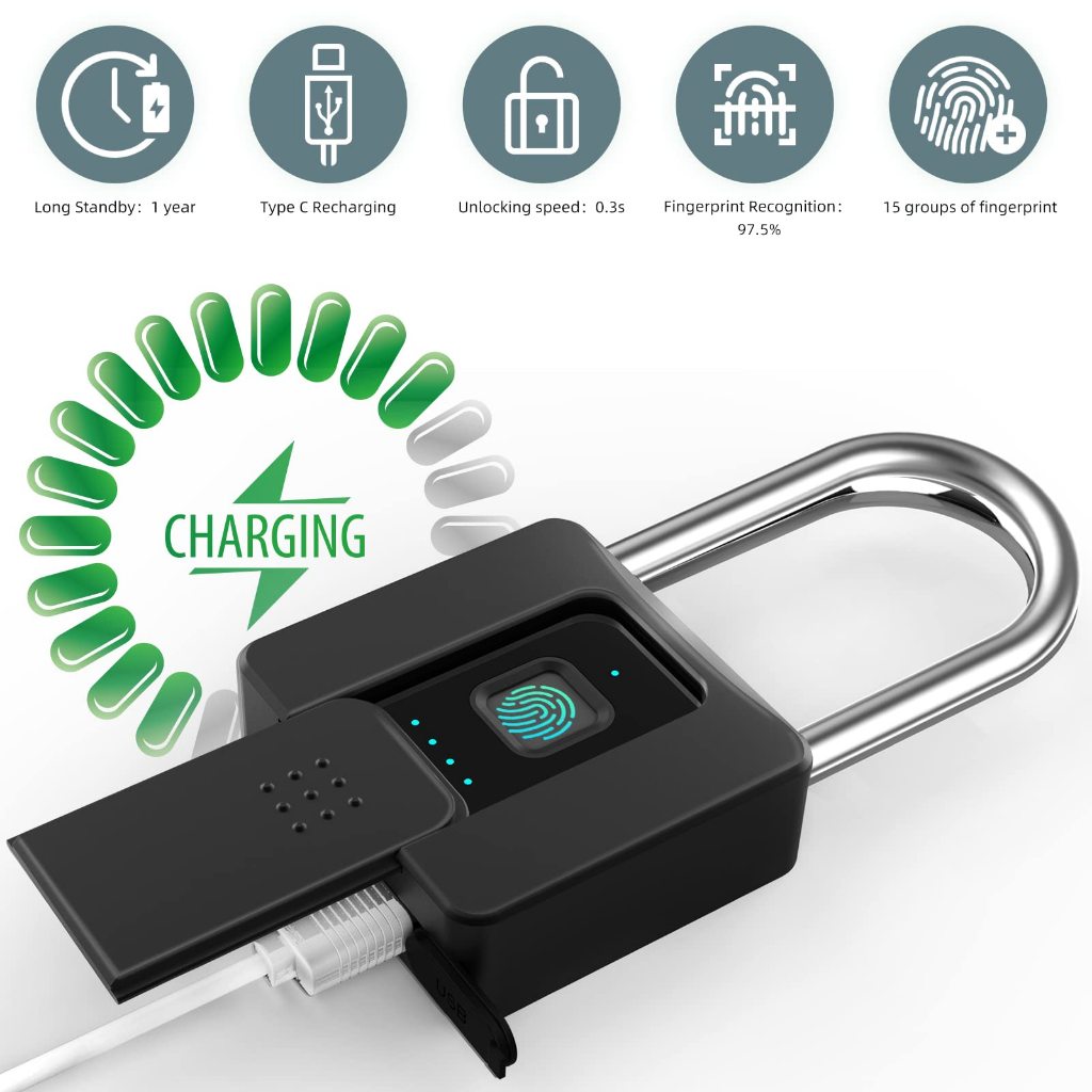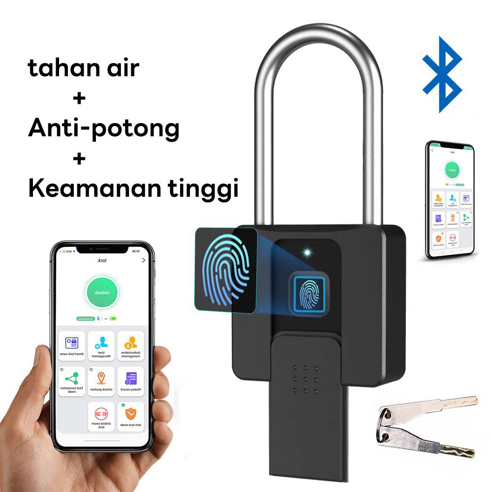Gembok Anti Maling Gembok Sidik Jari Balok Panjang Gembok Sidik Jari Tahan Air 20 Sidik Jari