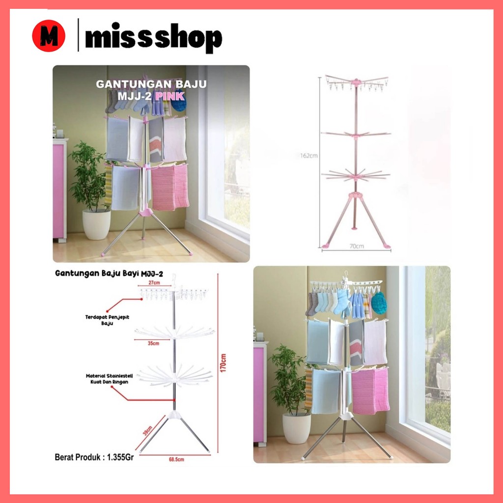 Jemuran Menara Rak Jemuran Baju Bayi Lipat Rak Susun Handuk Foldable Hanger 10 Jari-Jari