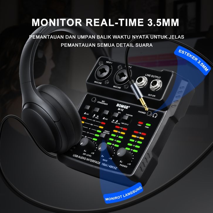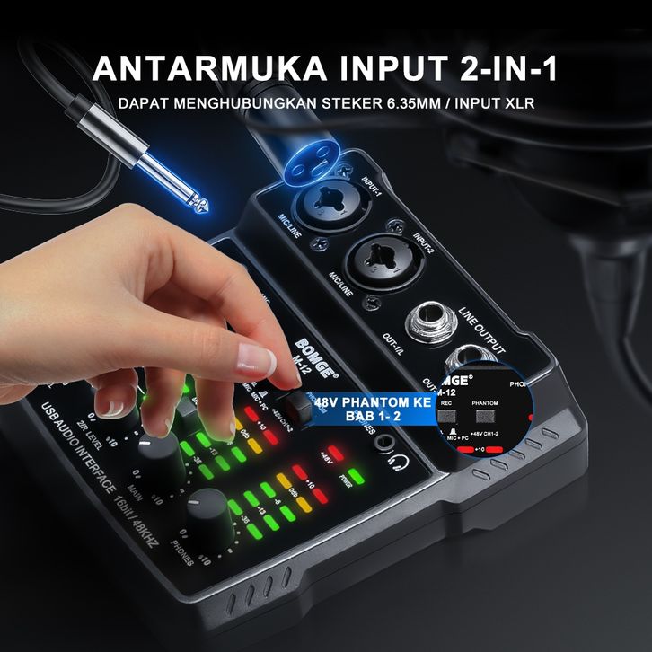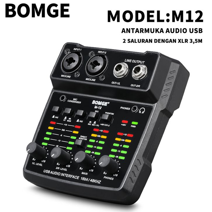 BOMGE M-12 USB Audio Interface Professional Wireless DJ Audio Mixer Recording Music Computer Recording Audio Interface X