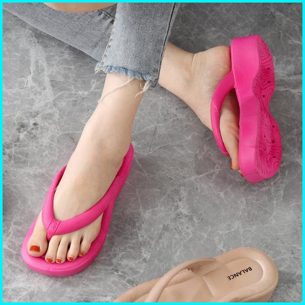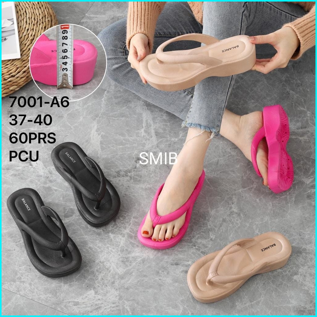 Sandal Jepit Wanita Karet Import Balance Motif Polos Sol Tebal 5cm 7001-a6